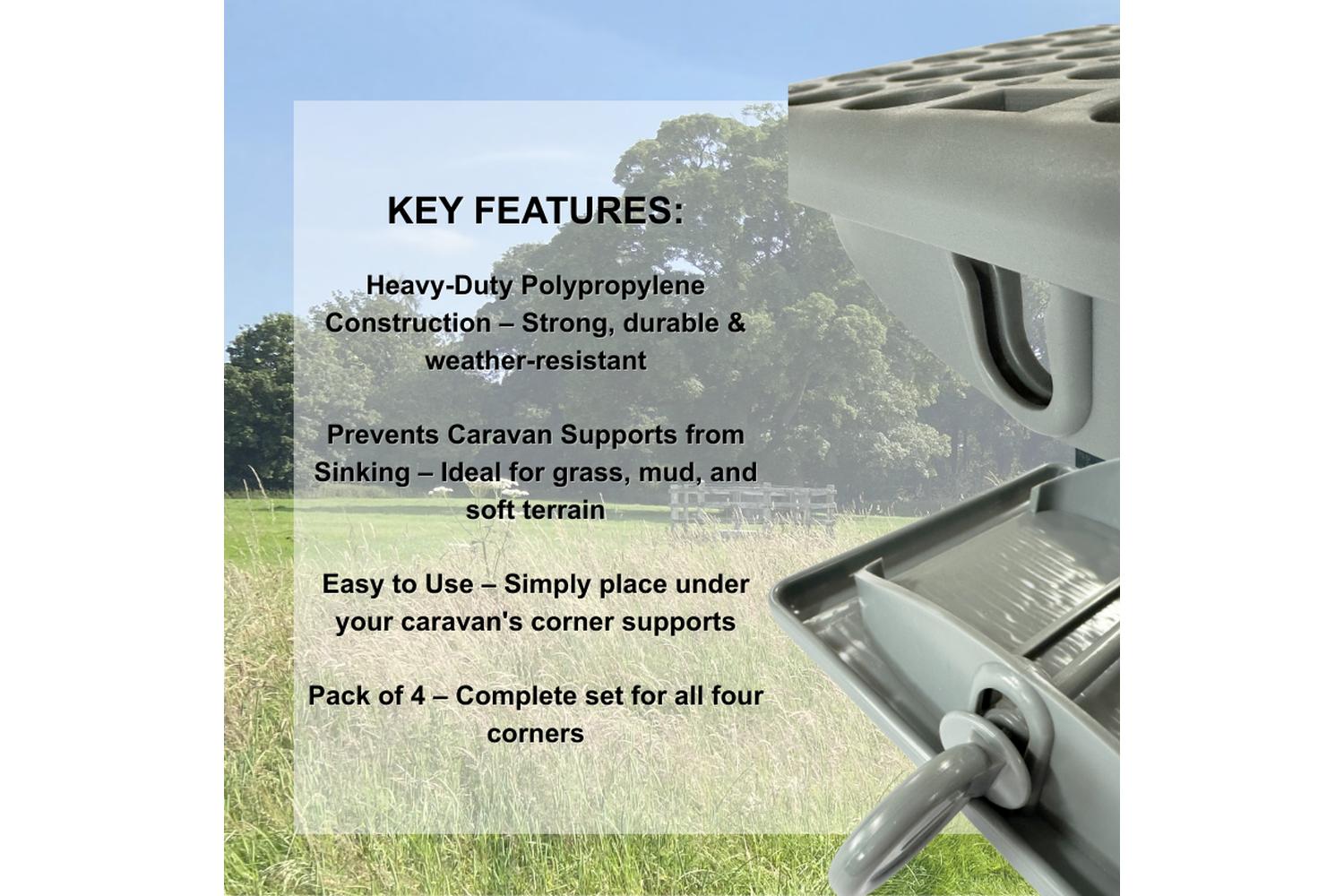 - Pack of four OLPRO Caravan Jack Pads with Pins for complete corner support