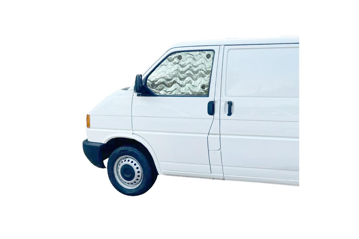 Experience comfort, privacy, and optimal temperature regulation on your adventures with the OLPRO VW T4 Internal Silver Blind Set. Expertly designed for VW T4 Transporter Campervans and other custom vans, this custom-tailored three-piece set provides perfect coverage for your front windscreen and the two front cab side windows.