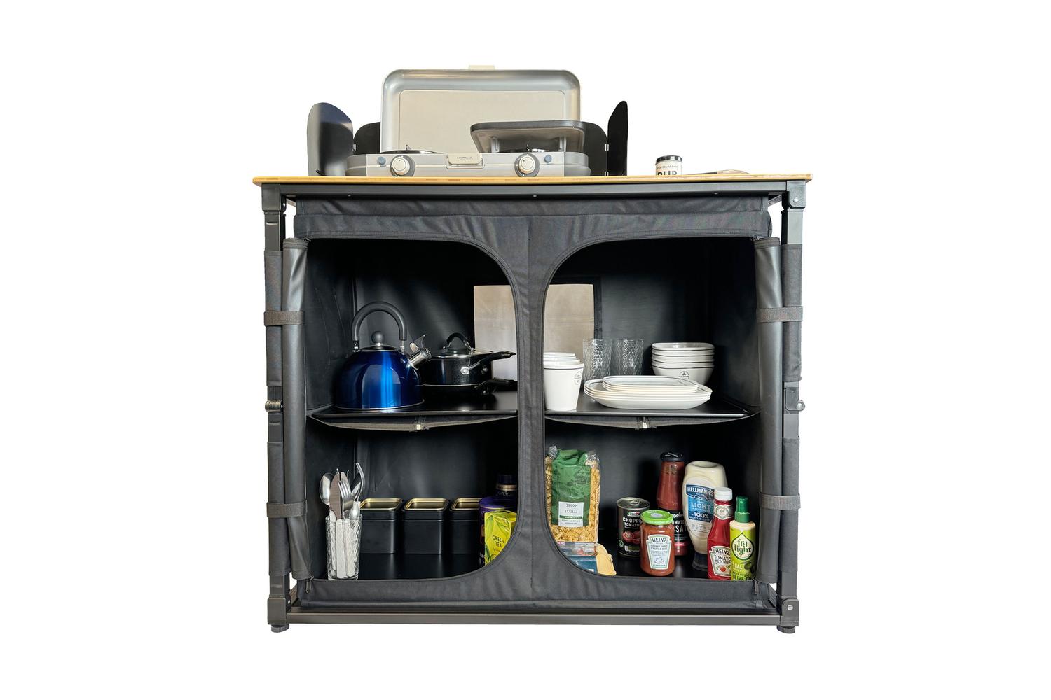 Made with an eco-friendly bamboo tabletop, this deluxe camping kitchen offers an attractive alternative to typical plastics. Bamboo has the remarkable assets of being naturally resilient, moisture-resistant and considerably strong, providing an excellent platform to create tantalizing outdoor meals, even in Ireland's unpredictable weather conditions.