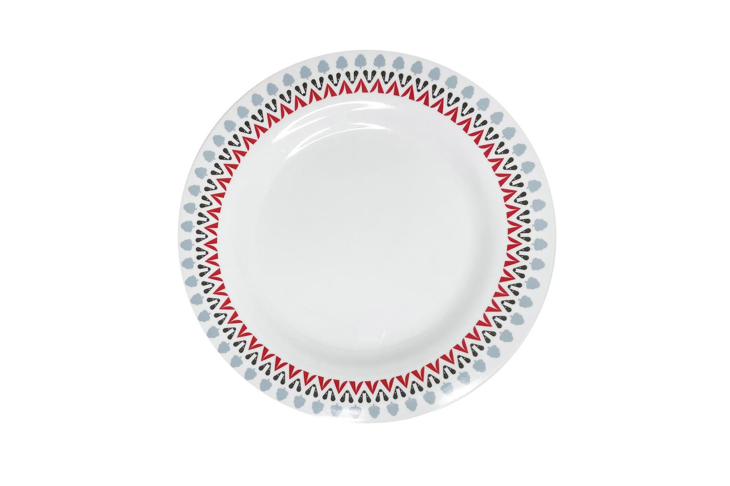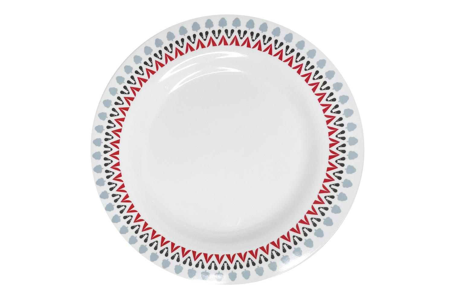 Bring a touch of contemporary style to your outdoor dining with the Witley Melamine Set by OLPRO. Perfect for the discerning camper, this exclusive design merges functionality with sophisticated aesthetics. This outdoor set is adorned with a chic print of trees, tents, and badgers in shades of red, black, and grey, echoing the beauty of the Irish wilderness.