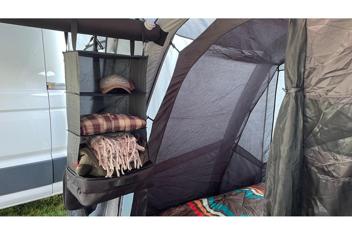 Tailored to the space-conscious camper, this organiser features multiple shelves and compartments to house anything from clothes and toiletries to snacks and camping gadgets. Every item has its designated spot, ensuring you find what you need, without hunting high and low. With one simple unzip, you're left with an array of neatly sorted possessions, fully maximizing your camping area and minimizing clutter.