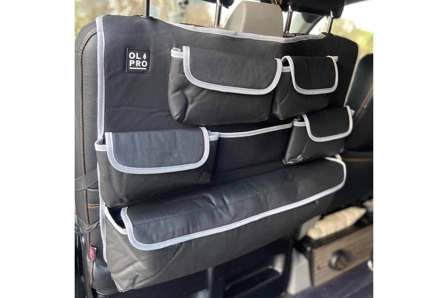 Whether you're a weekend getaway enthusiast or a hard core van lifer, our seat organiser is an essential travel accessory. Its accommodating design houses multiple pockets and compartments, allowing for easy storage of maps, gadgets, snacks, and more, positioning your necessary items within arm's reach. Machined from robust, high-quality materials, the OLPRO adventure-ready seat organiser is durable enough to withstand both off-road–naturally demanding–to calm city journeys, ensuring ultimate safety mid-transit.