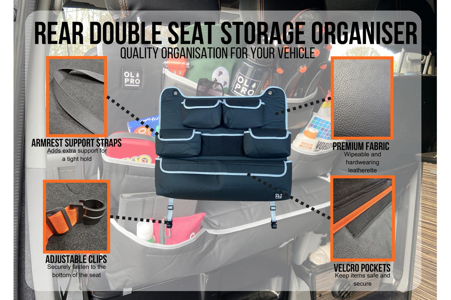 Discover the perfect companion for your on-road journey with the OLPRO Rear Double Seat Storage Organiser in grey. Specifically designed for camping enthusiasts and full-time nomads, this seat storage organiser strikes the right balance between style and function. Say goodbye to cluttered interiors as the Rear Double Seat Storage organiser guarantees to optimise your campervan space effectively and efficiently.