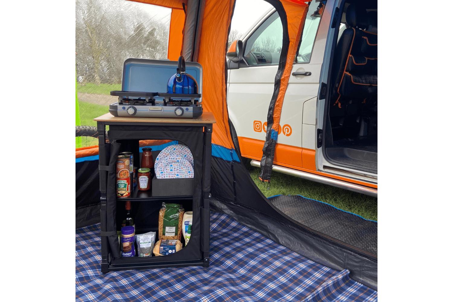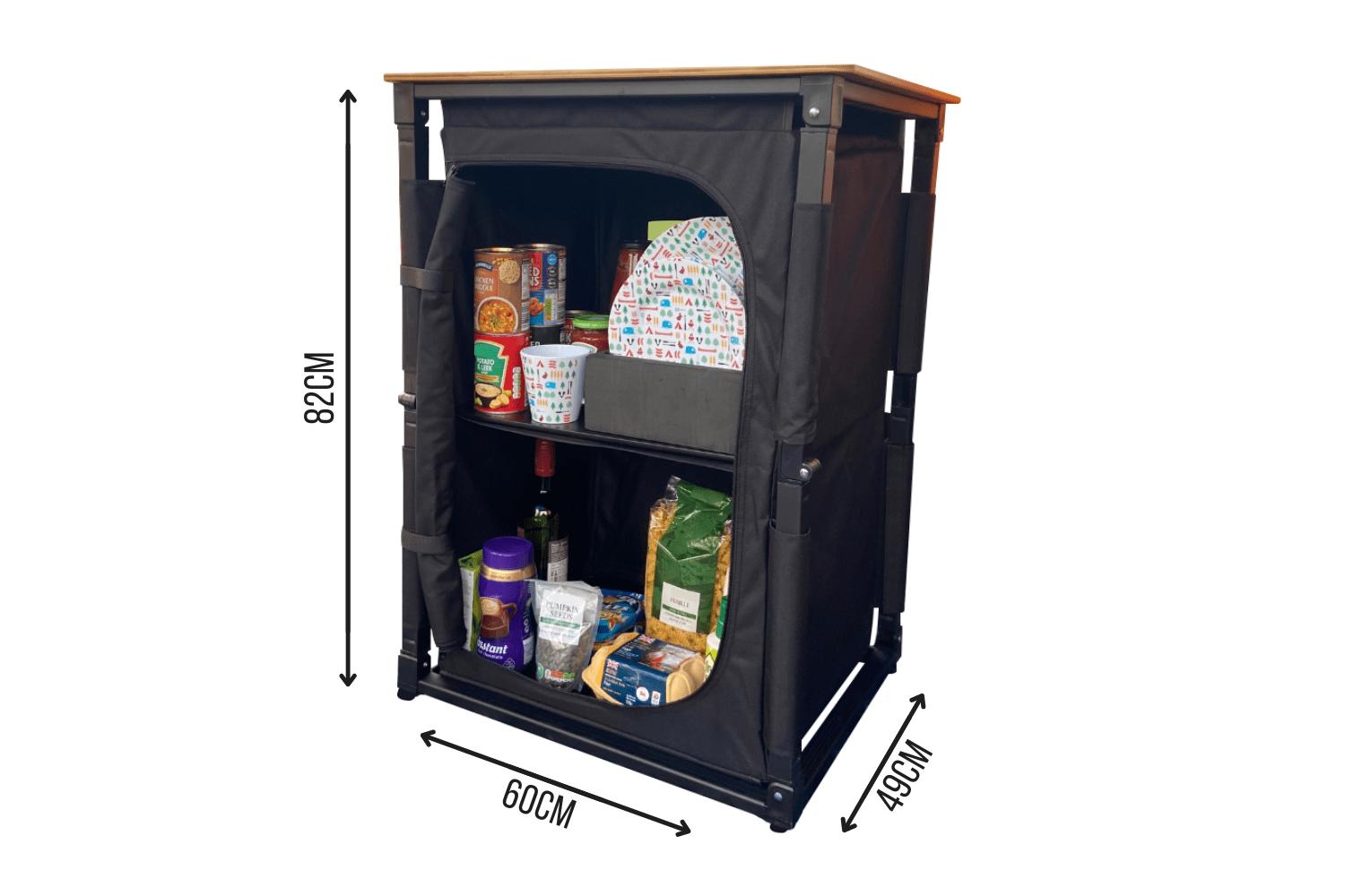 The highly convenient collapsible design of this table setup functions smoothly, unfolding within seconds, making your campsite cooking an undoubtedly effortless affair. With extra storage in the form of 2x MDF shelves, a mesh panel back for ventilation, a zippable door, and lightweight at just 8kg, this table has everything you need to make your outdoor cooking enjoyable and hassle-free.