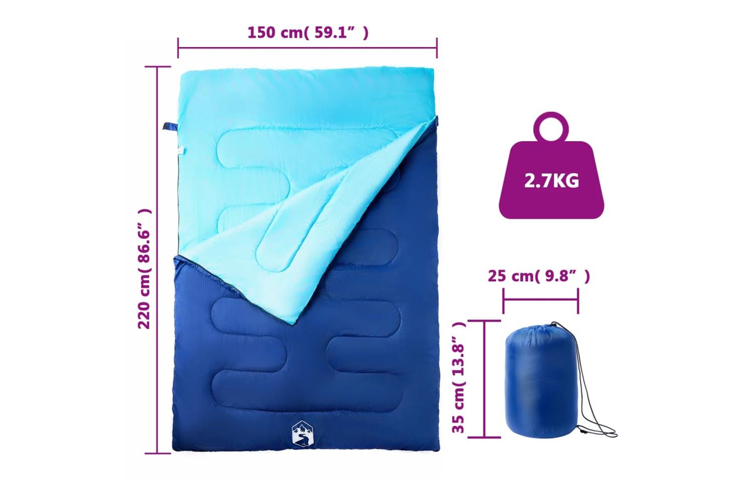 Vidaxl Double Sleeping Bag With Pillows For Adults Camping 3-4 Seasons