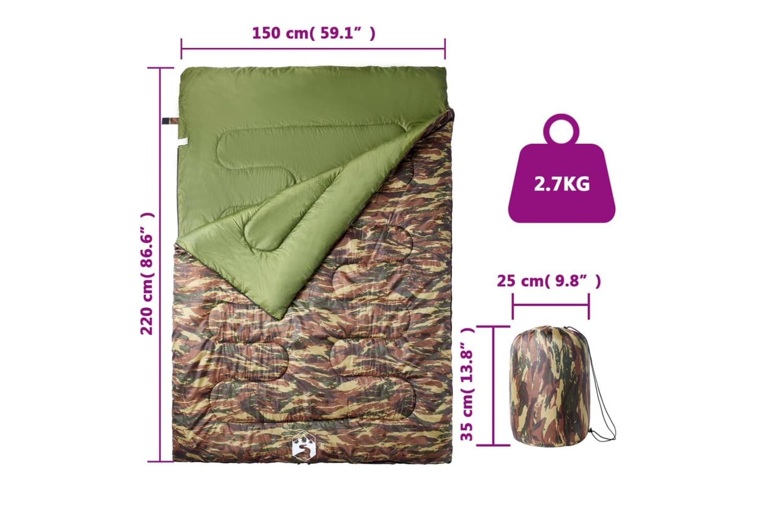 Vidaxl Double Sleeping Bag With Pillows For Adults Camping 3-4 Seasons