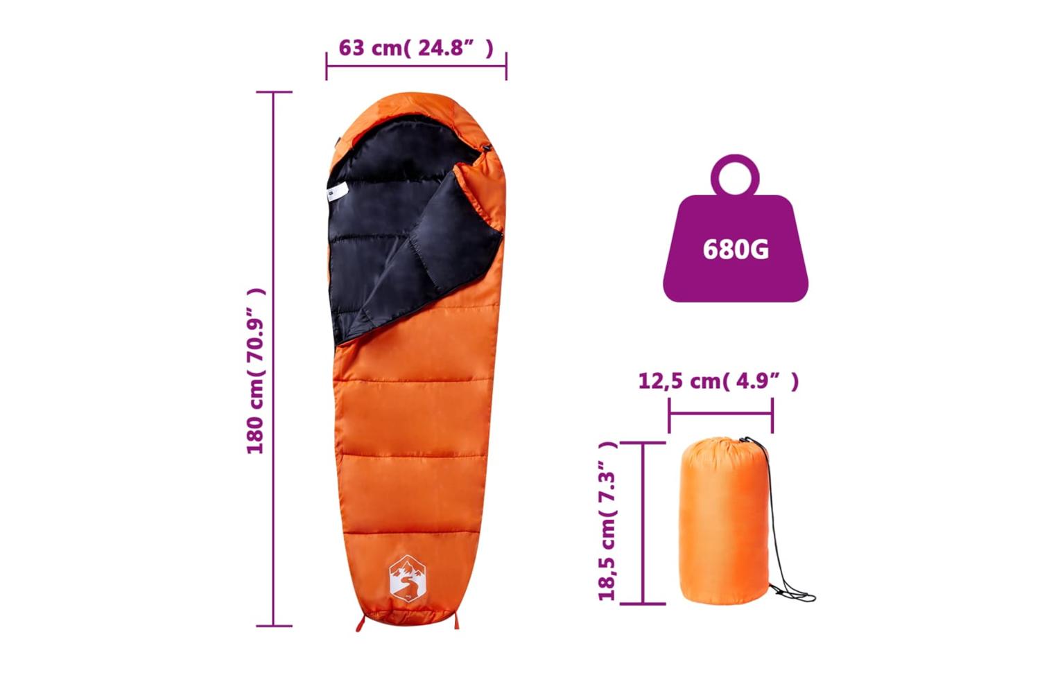 - Sleeping bag size: 180 x 63 cm (L x W)