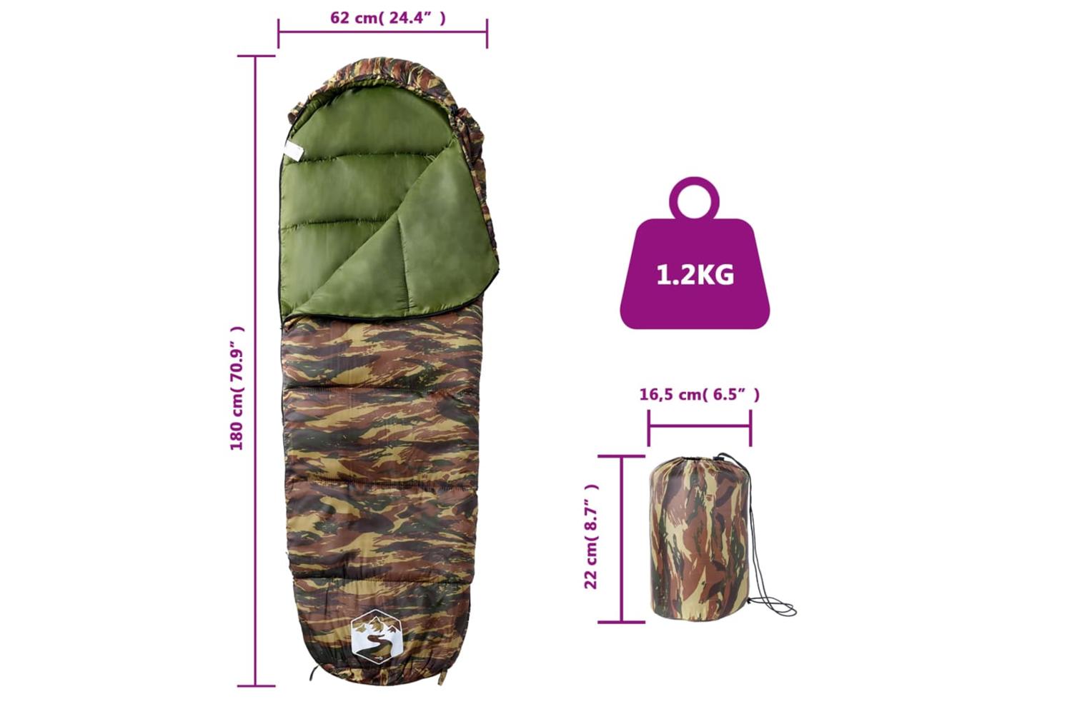 - Sleeping bag size: 180 x 62 cm (L x W)