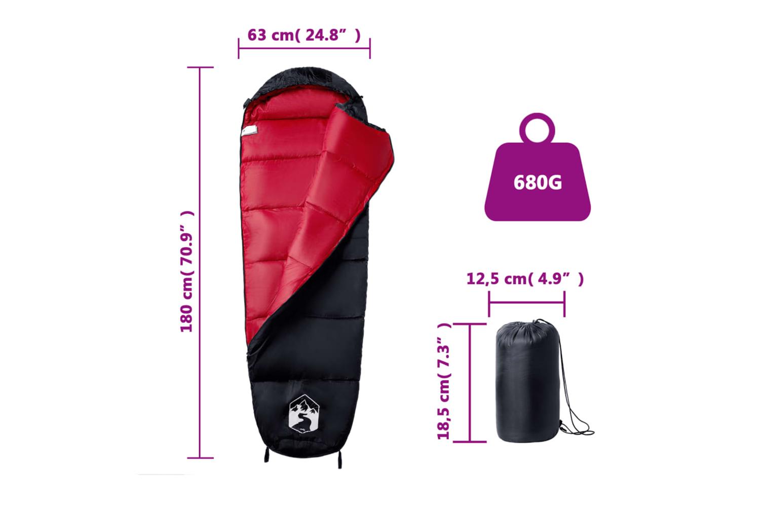 - Sleeping bag size: 180 x 63 cm (L x W)
