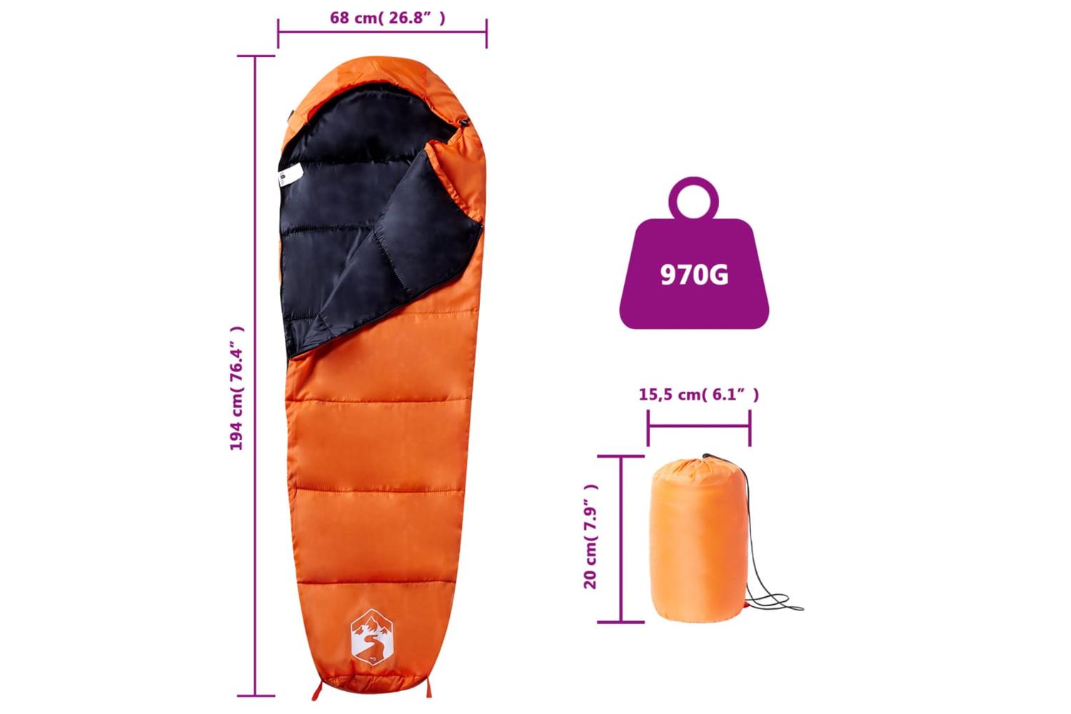 - Sleeping bag size: 194 x 68 cm (L x W)