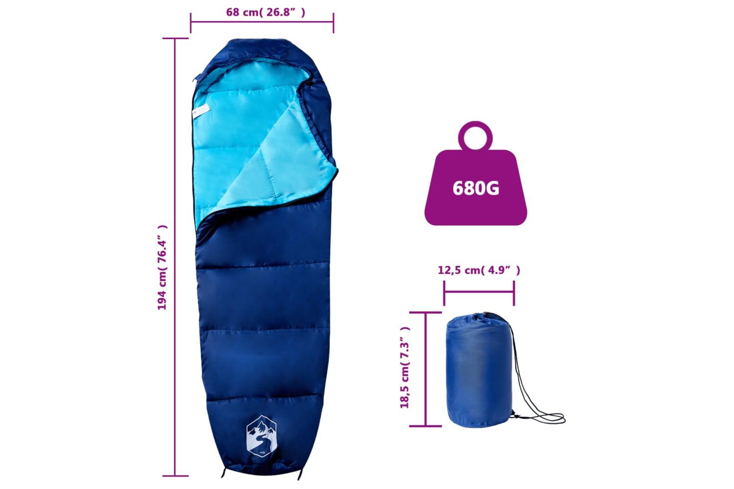 - Sleeping bag size: 194 x 68 cm (L x W)