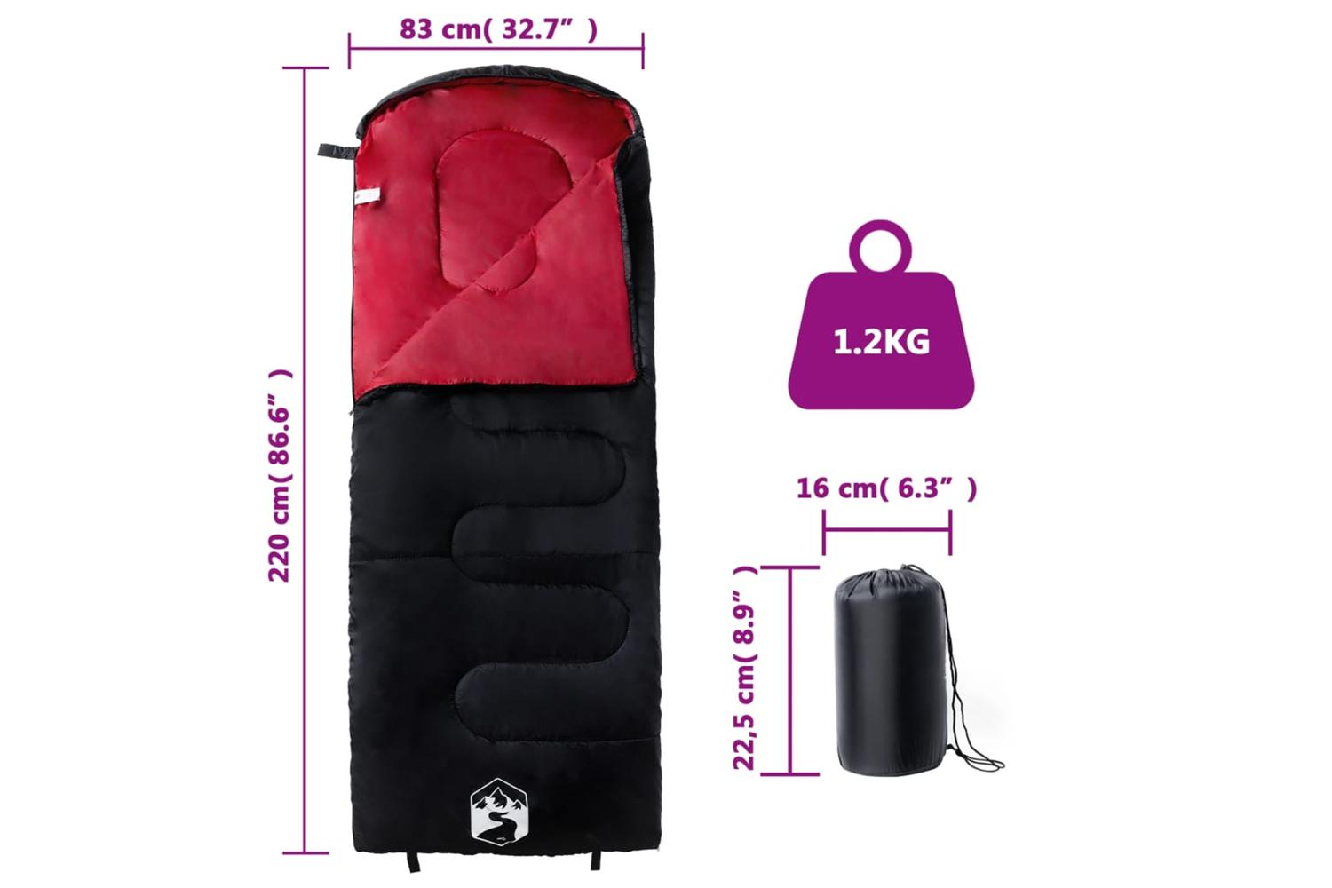 - Sleeping bag size: 220 x 83 cm (L x W)