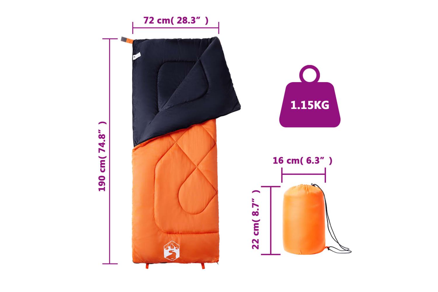 - Sleeping bag size: 190 x 72 cm (L x W)