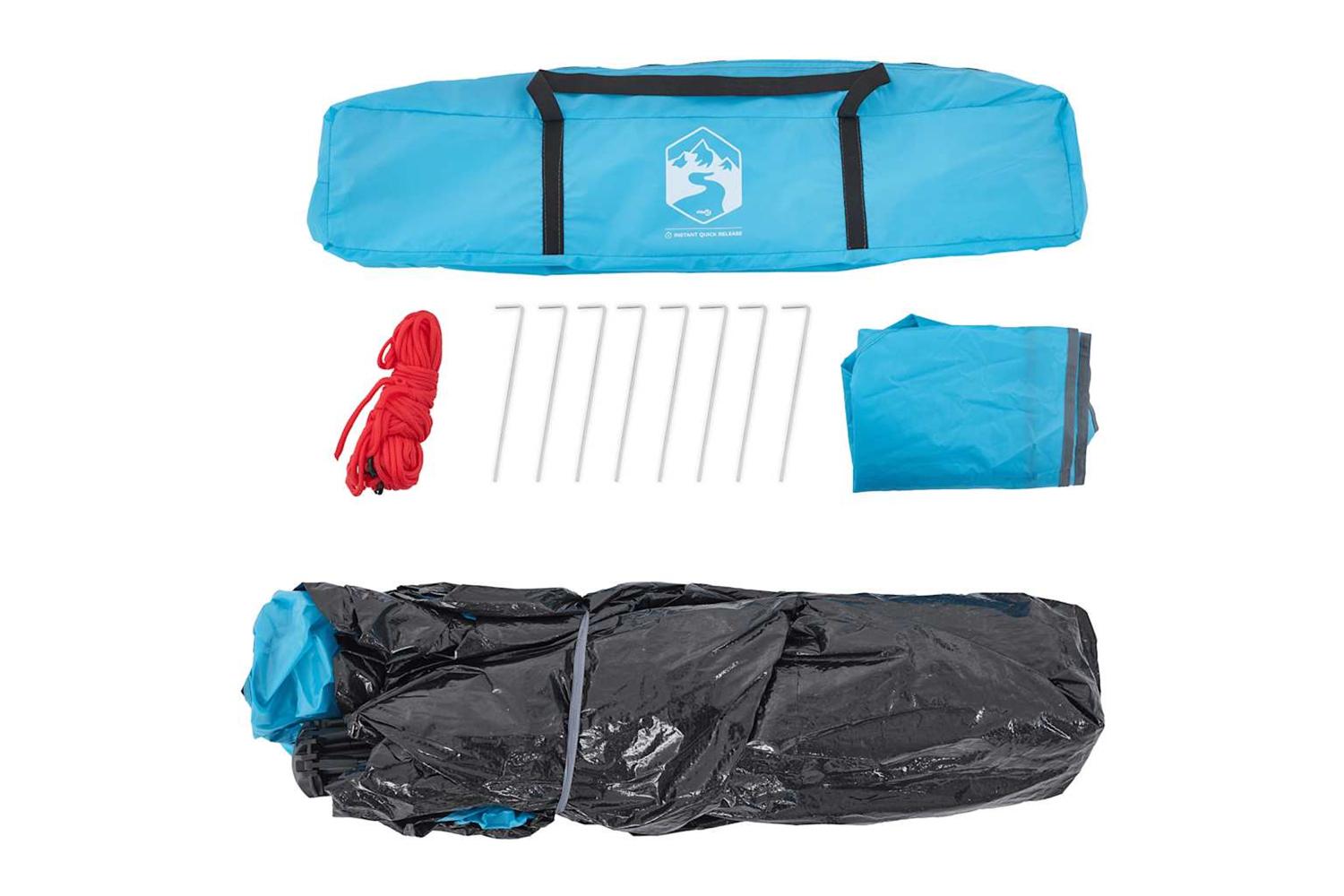 - Quick-release system: Set up the tent effortlessly with the quick-release system! Lay the tent down, extend the pre-assembled poles until they lock into place, and you're all set!