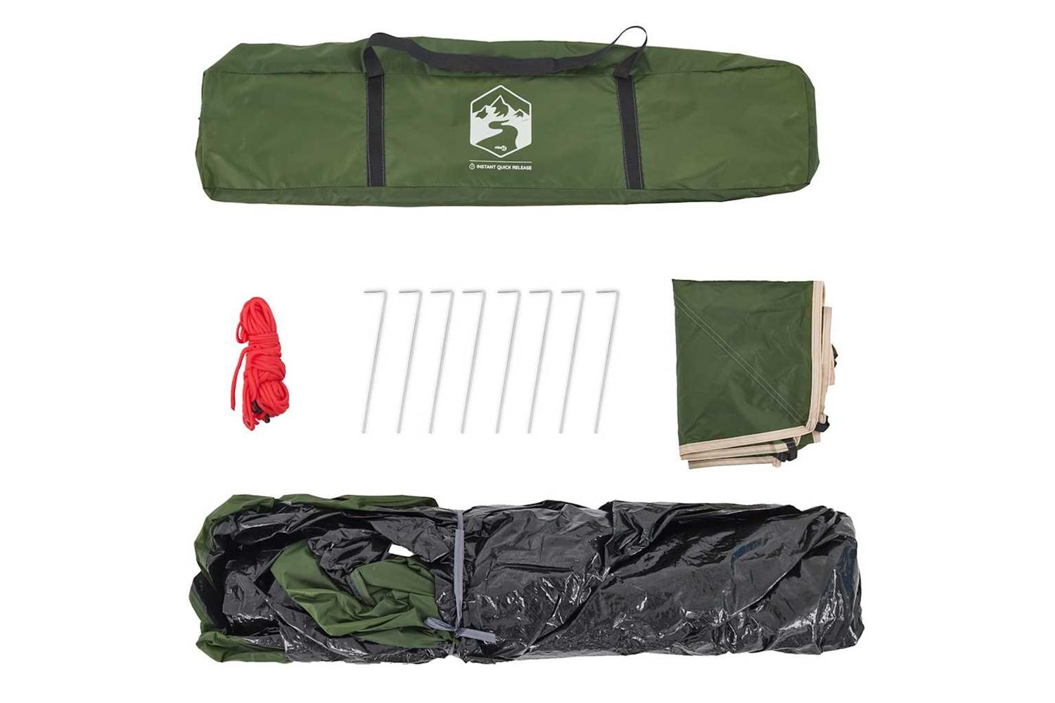 - Quick-release system: Set up the tent effortlessly with the quick-release system! Lay the tent down, extend the pre-assembled poles until they lock into place, and you're all set!