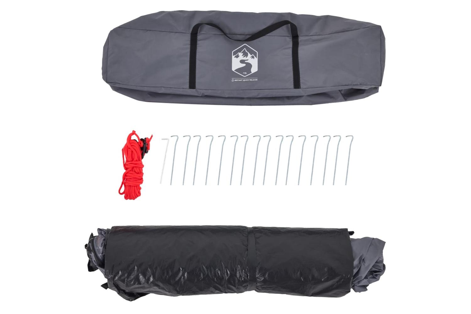 - Quick-release system: Set up the tent effortlessly with the quick-release system! Lay the tent down, extend the pre-assembled poles until they lock into place, and you're all set!