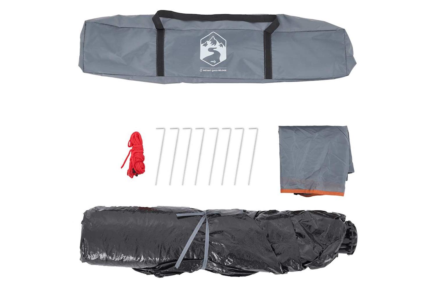 - Quick-release system: Set up the tent effortlessly with the quick-release system! Lay the tent down, extend the pre-assembled poles until they lock into place, and you're all set!