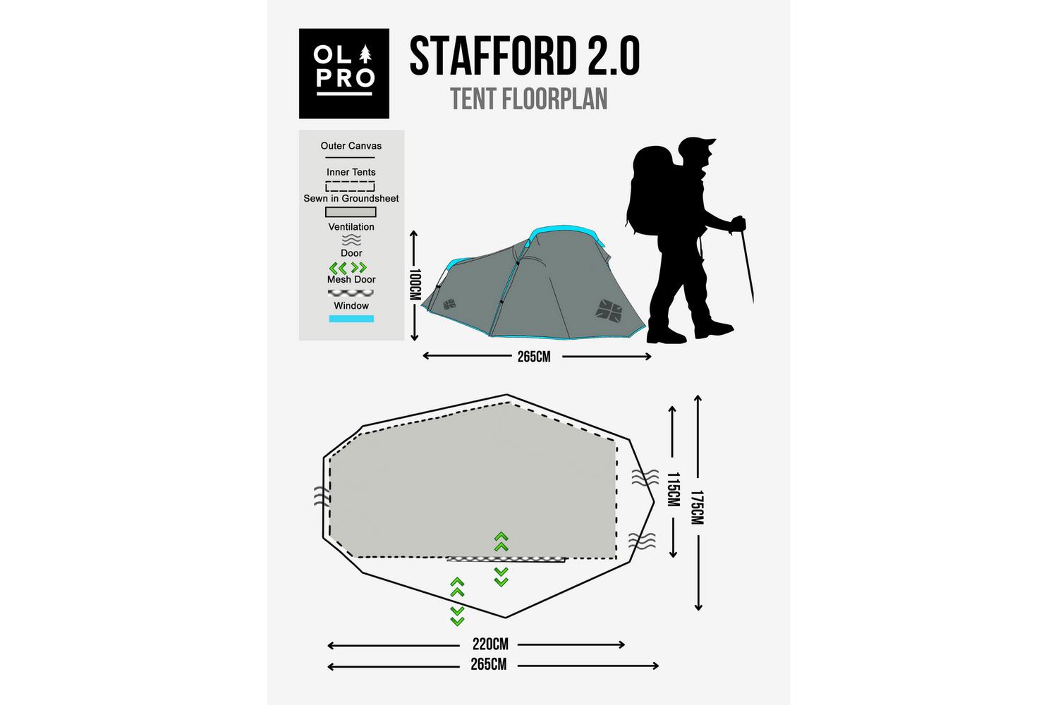 Feel the thrill of the wilderness with the Stafford 20 - 2 Berth Tent by OLPRO. Enjoy camping at its best while caring for the environment. The Stafford 20 - embrace outdoor experiences, live the adventure, and make memories to last a lifetime.
