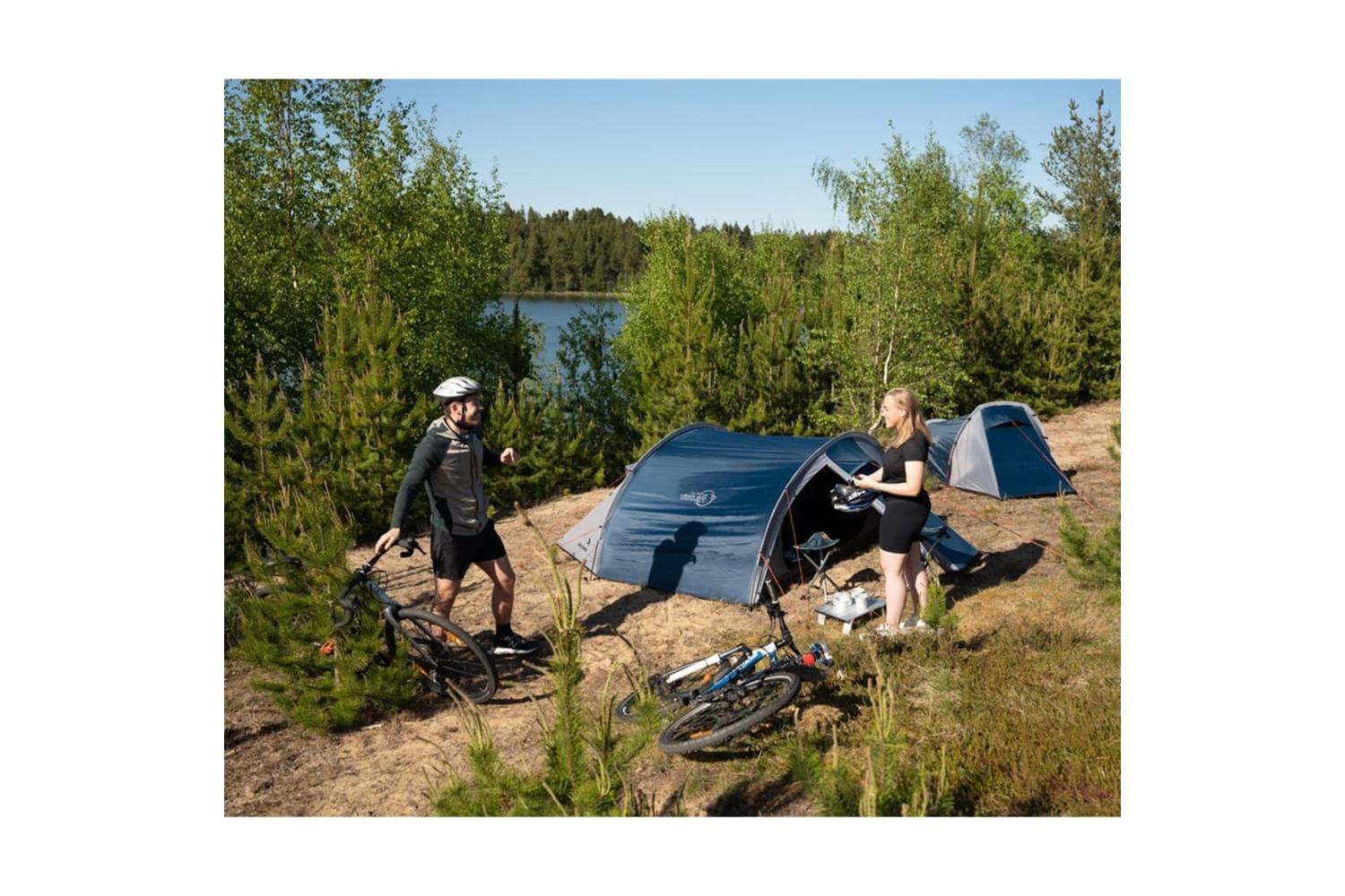 This Vega 300 Compact from Easy Camp is a comfortable base after a day of exploring new horizons on two wheels, making it ideal for friends sharing the freedom of outdoor adventures.