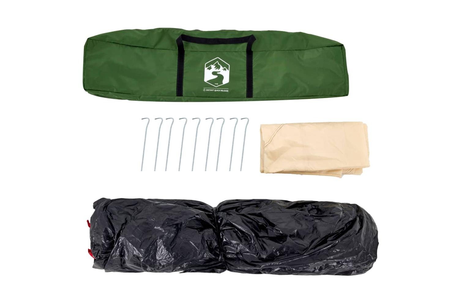 - Quick-release system: Set up the tent effortlessly with the quick-release system! Lay the tent down, extend the pre-assembled poles until they lock into place, and you're all set!