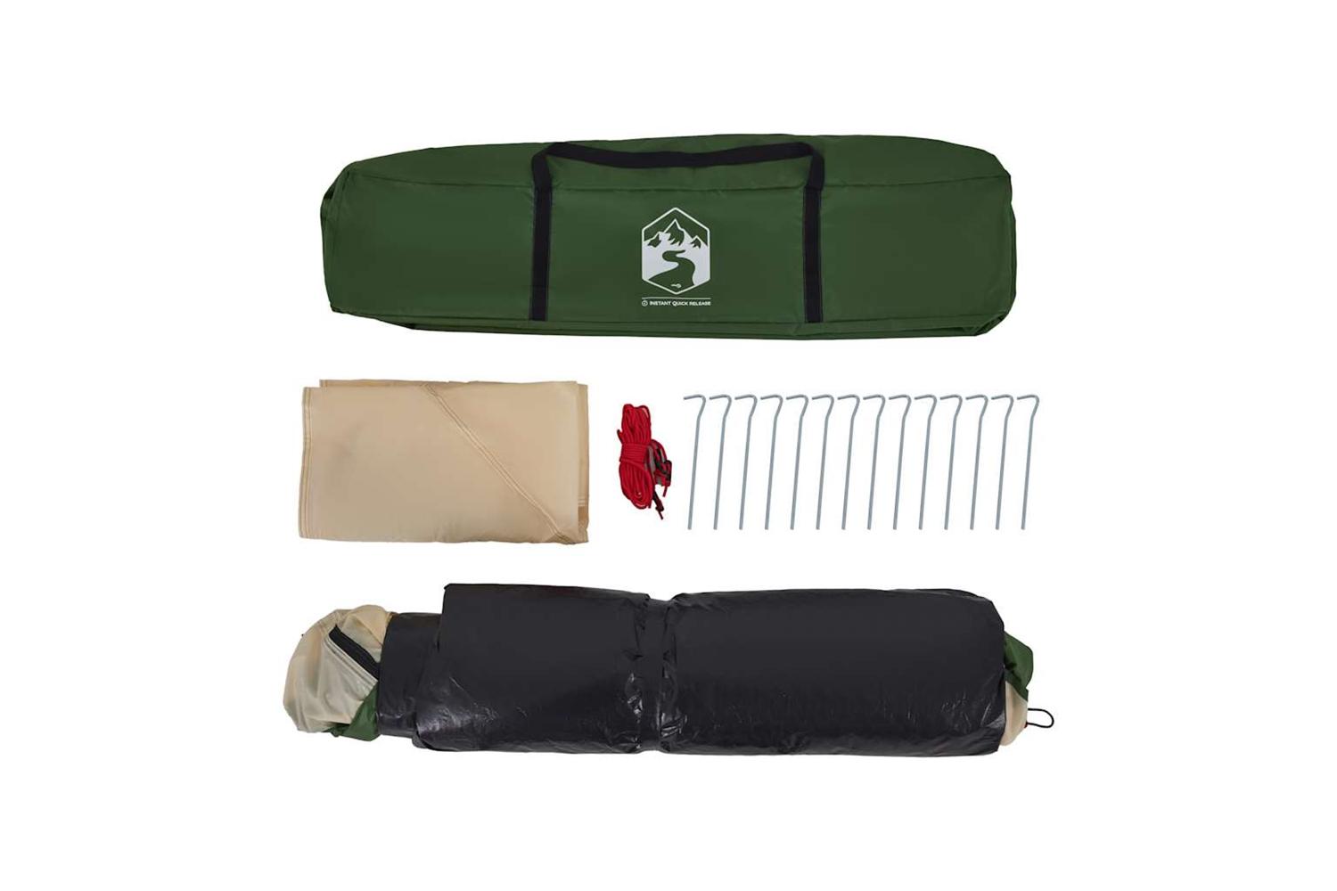 - Quick-release system: Set up the tent effortlessly with the quick-release system! Lay the tent down, extend the pre-assembled poles until they lock into place, and you're all set!