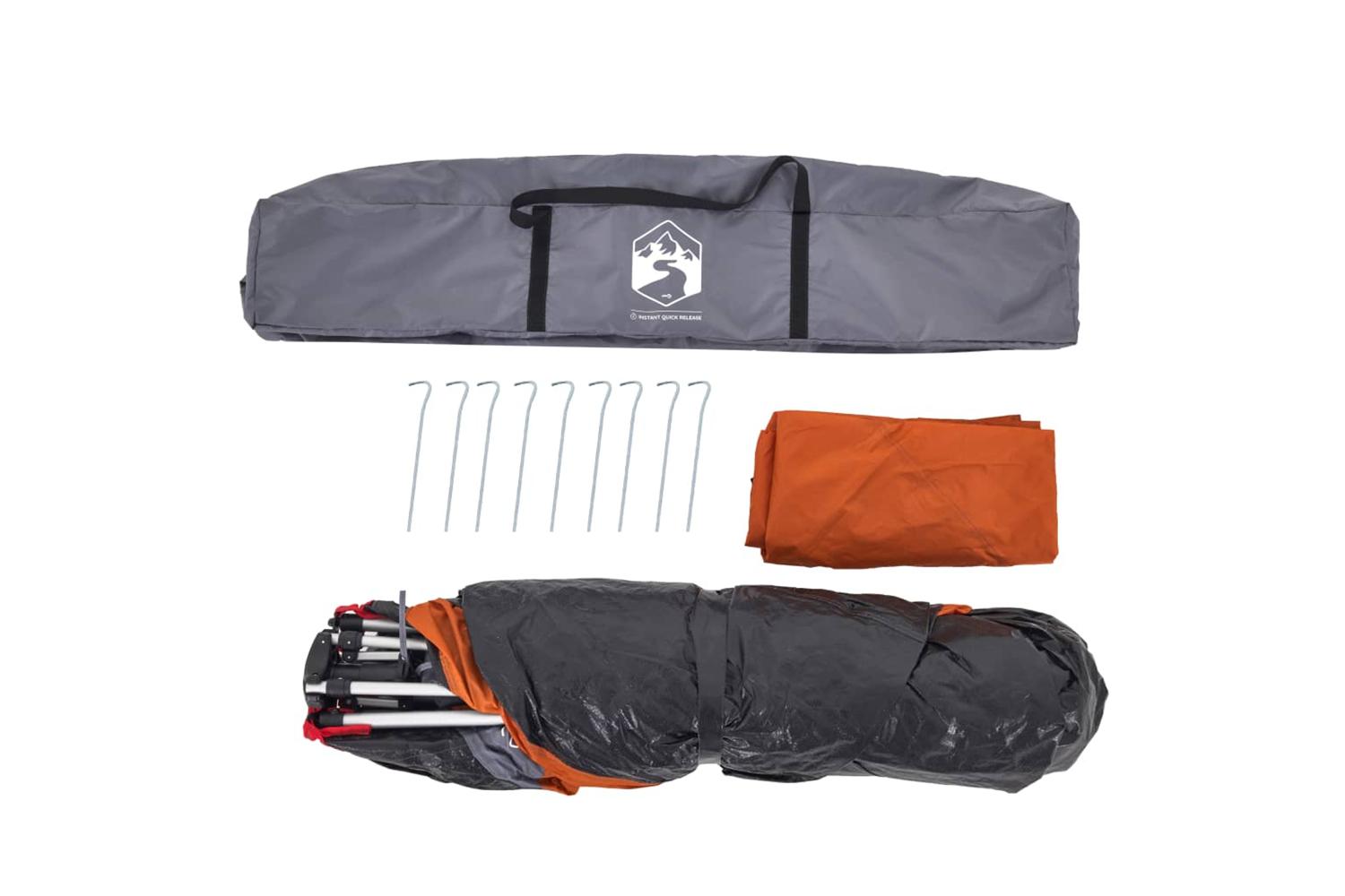 - Quick-release system: Set up the tent effortlessly with the quick-release system! Lay the tent down, extend the pre-assembled poles until they lock into place, and you're all set!