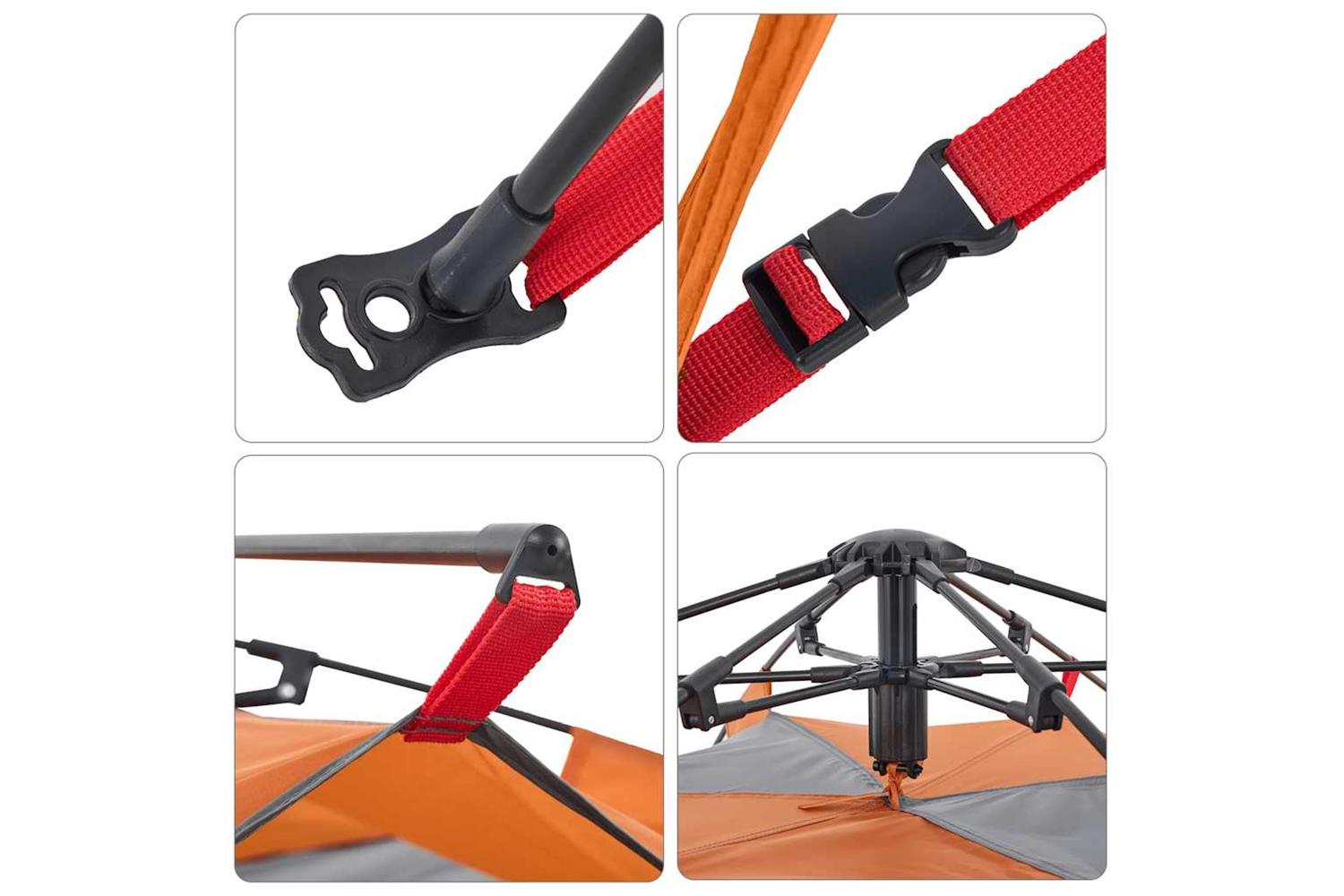 - Quick-release system: Set up the tent effortlessly with the quick-release system! Lay the tent down, extend the pre-assembled poles until they lock into place, and you're all set!