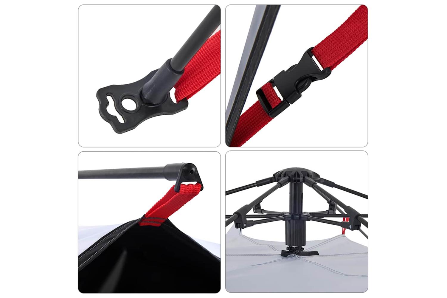 - Quick-release system: Set up the tent effortlessly with the quick-release system! Lay the tent down, extend the pre-assembled poles until they lock into place, and you're all set!