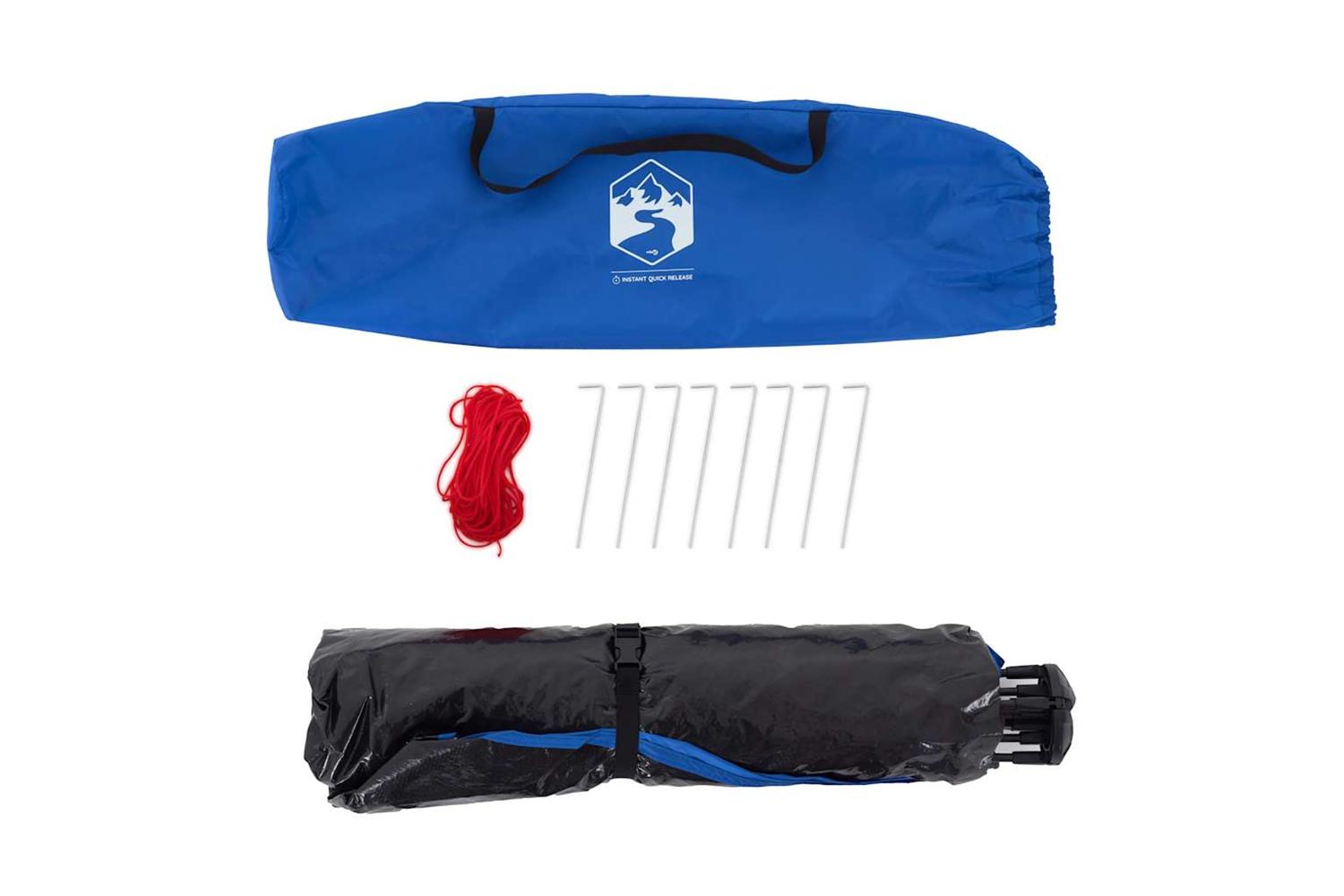 - Quick-release system: Set up the tent effortlessly with the quick-release system! Lay the tent down, extend the pre-assembled poles until they lock into place, and you're all set!
