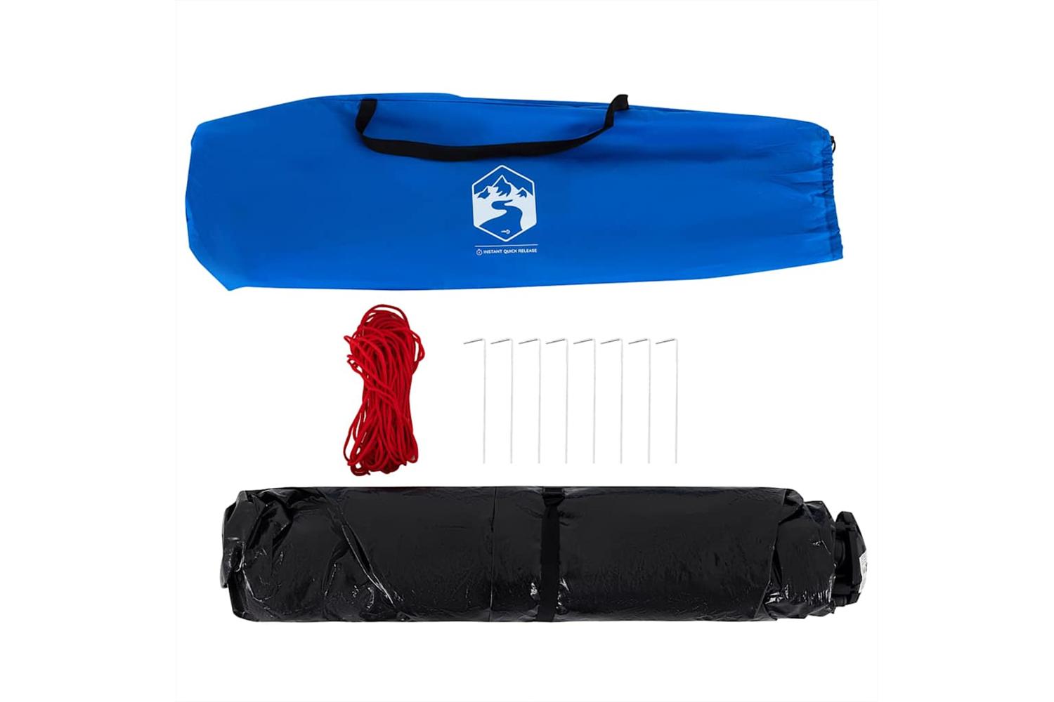 - Quick-release system: Set up the tent effortlessly with the quick-release system! Lay the tent down, extend the pre-assembled poles until they lock into place, and you're all set!