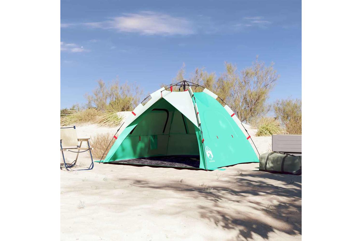 - Quick-release system: Set up the tent effortlessly with the quick-release system! Lay the tent down, extend the pre-assembled poles until they lock into place, and you're all set!