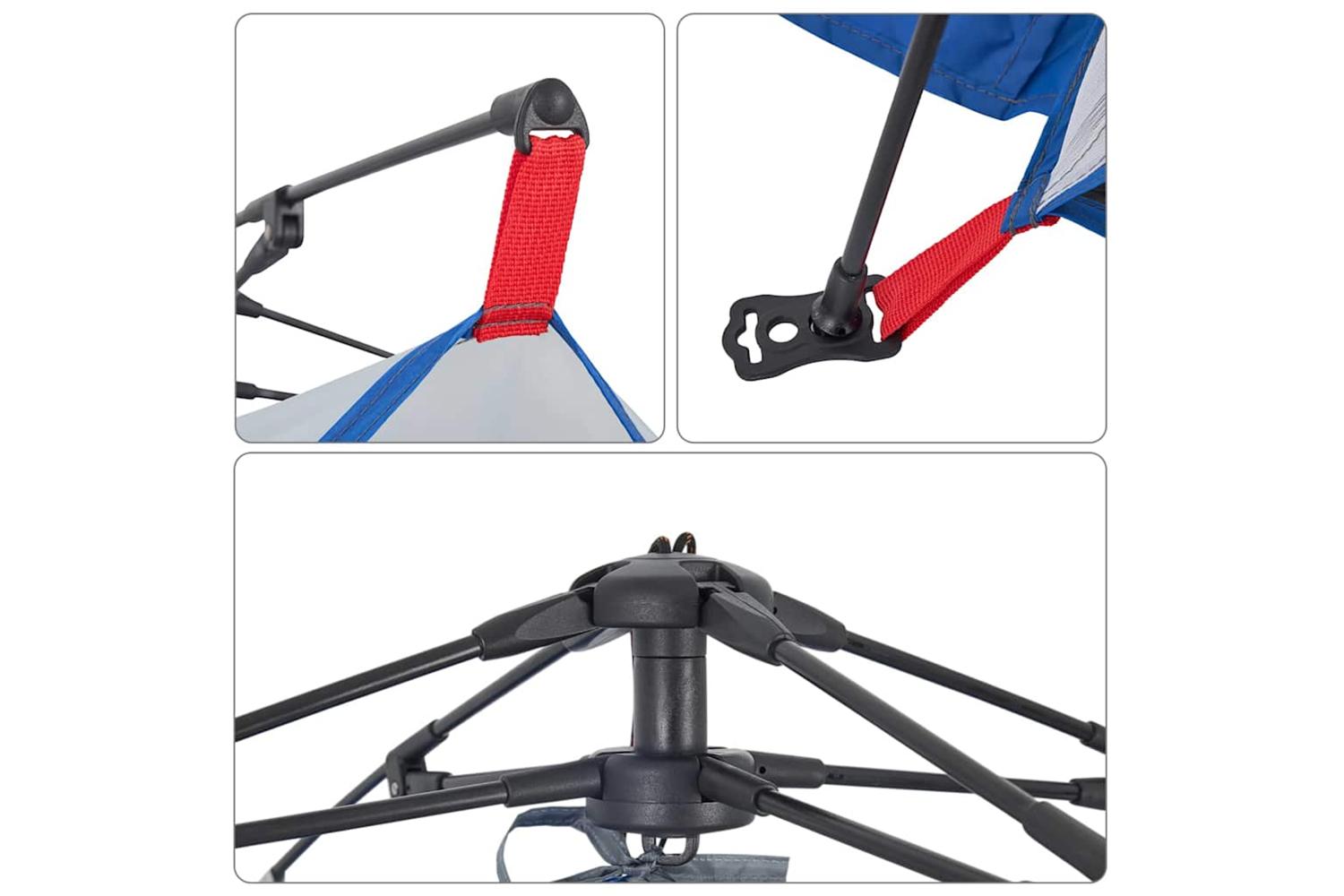 - Quick-release system: Set up the tent effortlessly with the quick-release system! Lay the tent down, extend the pre-assembled poles until they lock into place, and you're all set!