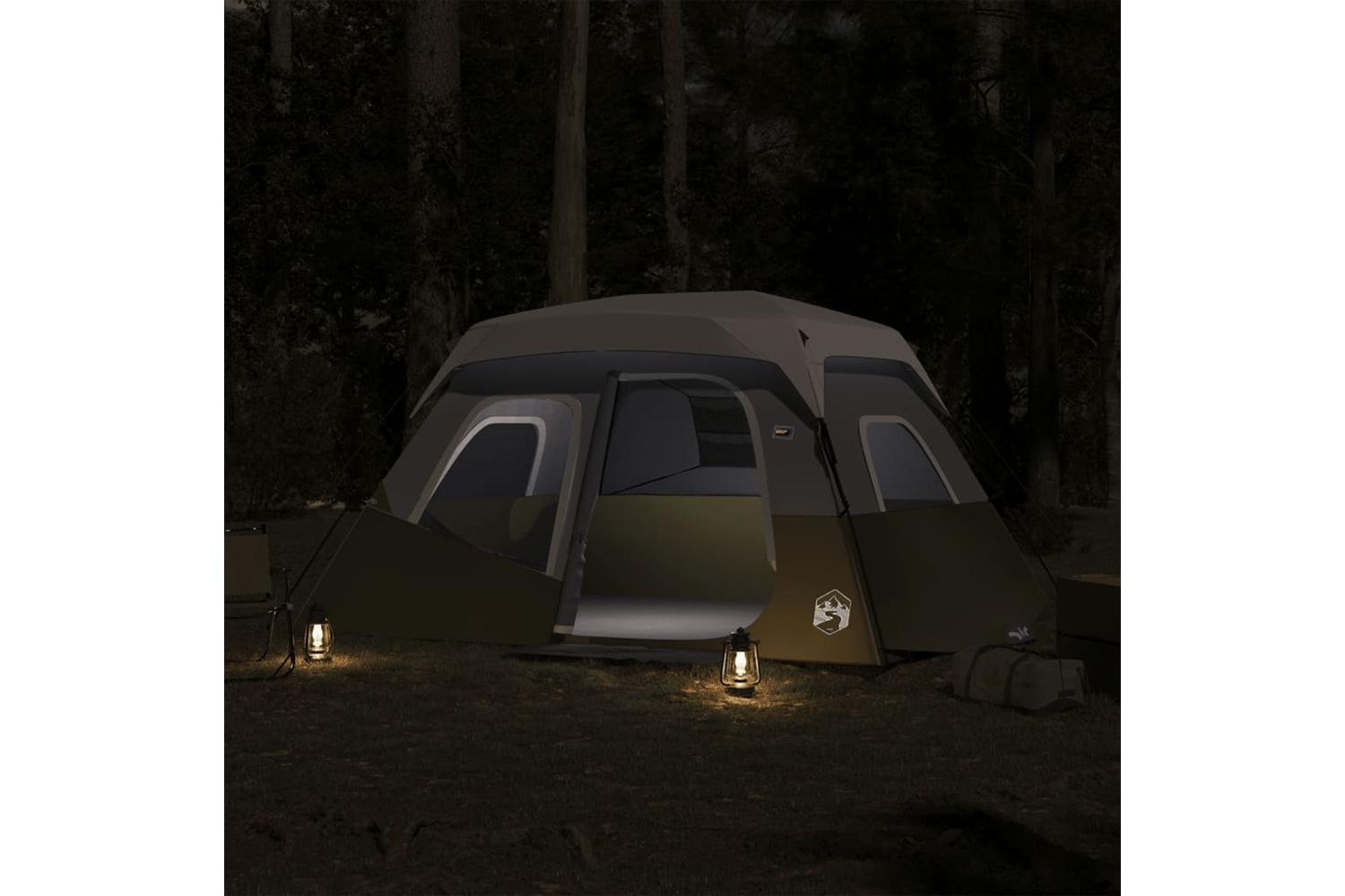 - LED lighting: This tent has LED lights on the ceiling poles with three brightness settings: high, low, and night light. They can be powered by either a power bank or 4D batteries (both not included). The light-diffusing fabric ensures even illumination throughout the tent, creating a cosy and well-lit environment for all your camping adventures.