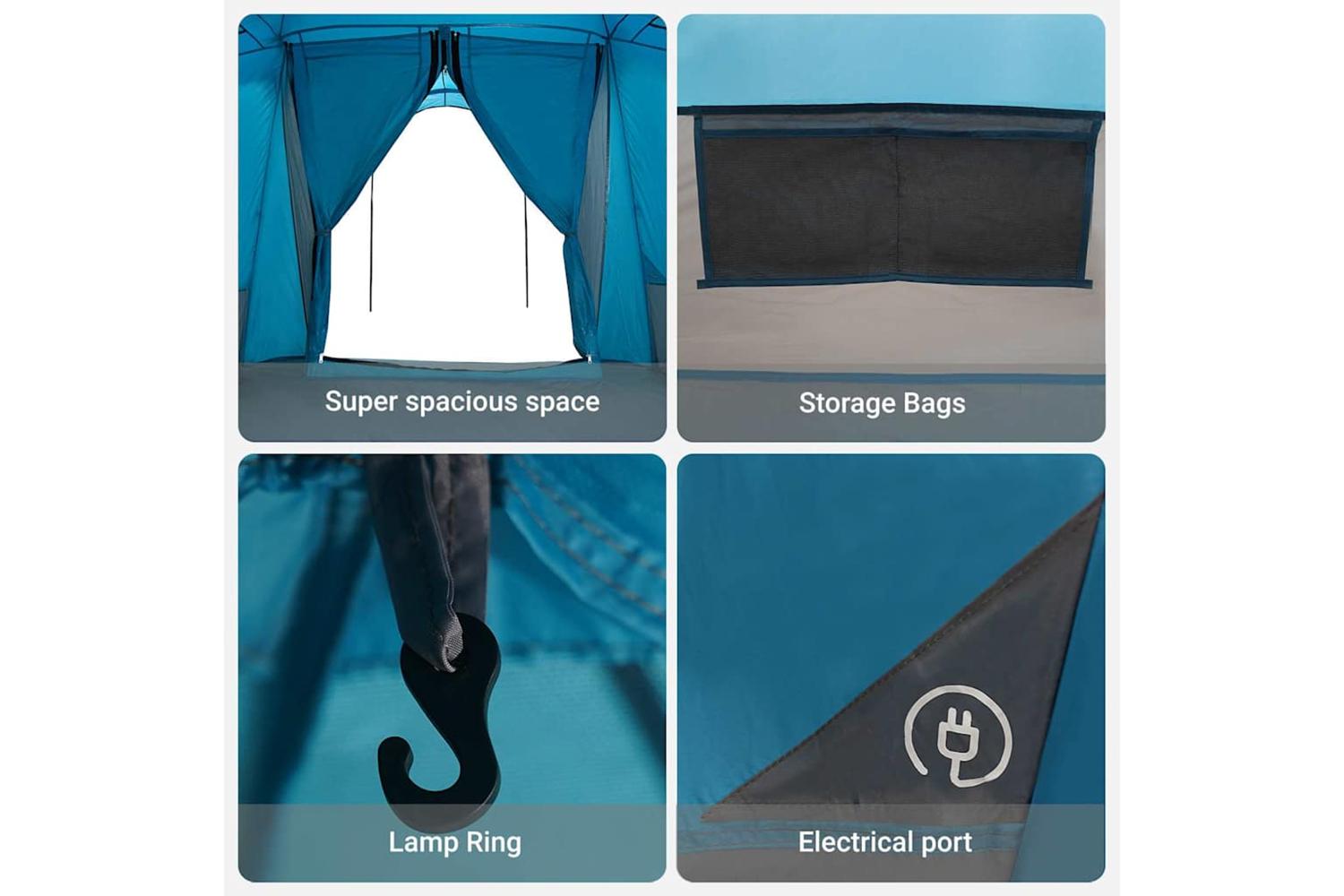 This versatile Waterproof Family Tent is the perfect shelter solution for camping enthusiasts who appreciate both function and style. Designed with modernity in mind, its sleek form is accompanied by functionality. The tent spans a generous 721 x 335 cm, providing ample space for family outings or group treks. Made from durable polyester with PU coating and supported by a sturdy fiberglass structure, this tent ensures stability and resilience against unpredictable weather.