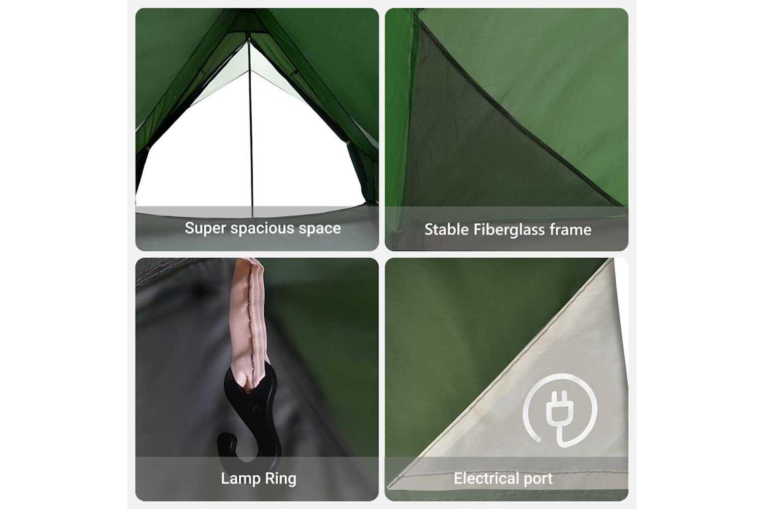- Materials: Crafted from Polyester and Fiberglass, this tent is engineered to withstand challenging outdoor conditions. The polyester component provides a durable shield against water while enhancing the tent's longevity in adverse weather, making it a reliable choice for camping enthusiasts.