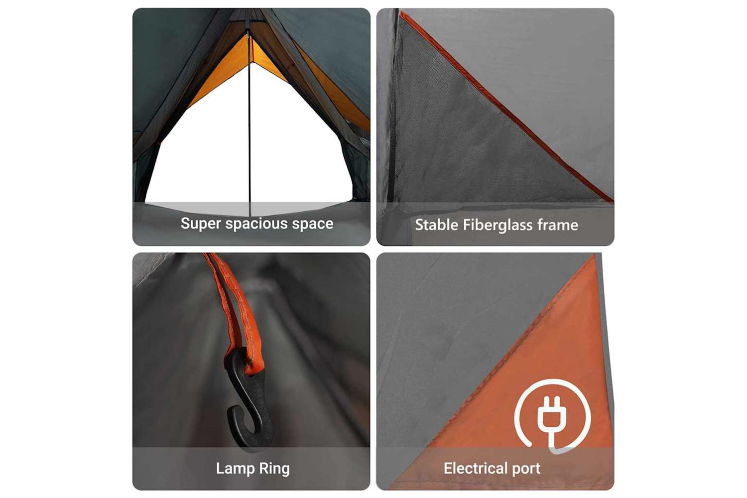 - Materials: Crafted from Polyester and Fiberglass, this tent is engineered to withstand challenging outdoor conditions. The polyester component provides a durable shield against water while enhancing the tent's longevity in adverse weather, making it a reliable choice for camping enthusiasts.
