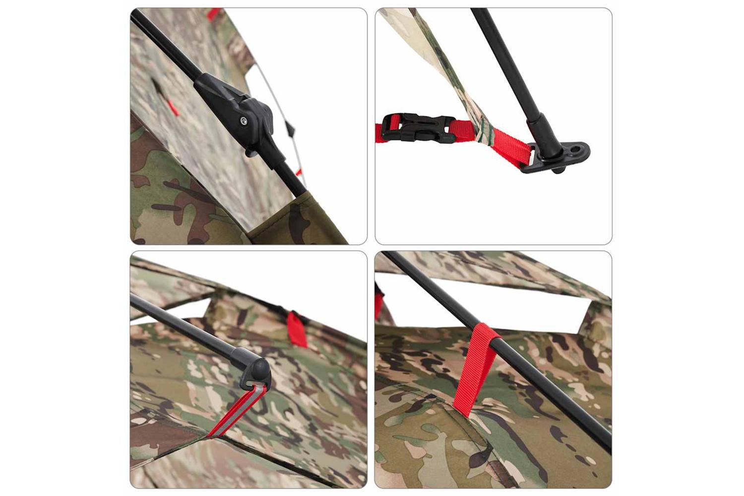 - Quick-release system: Set up the tent effortlessly with the quick-release system! Lay the tent down, extend the pre-assembled poles until they lock into place, and you're all set!