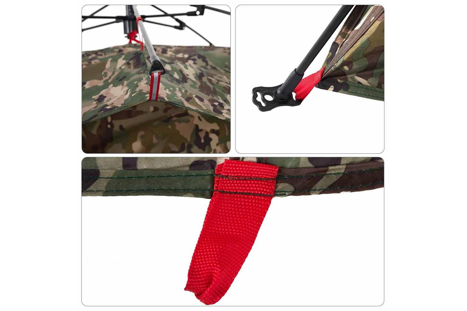 - Quick-release system: Set up the tent effortlessly with the quick-release system! Lay the tent down, extend the pre-assembled poles until they lock into place, and you're all set!