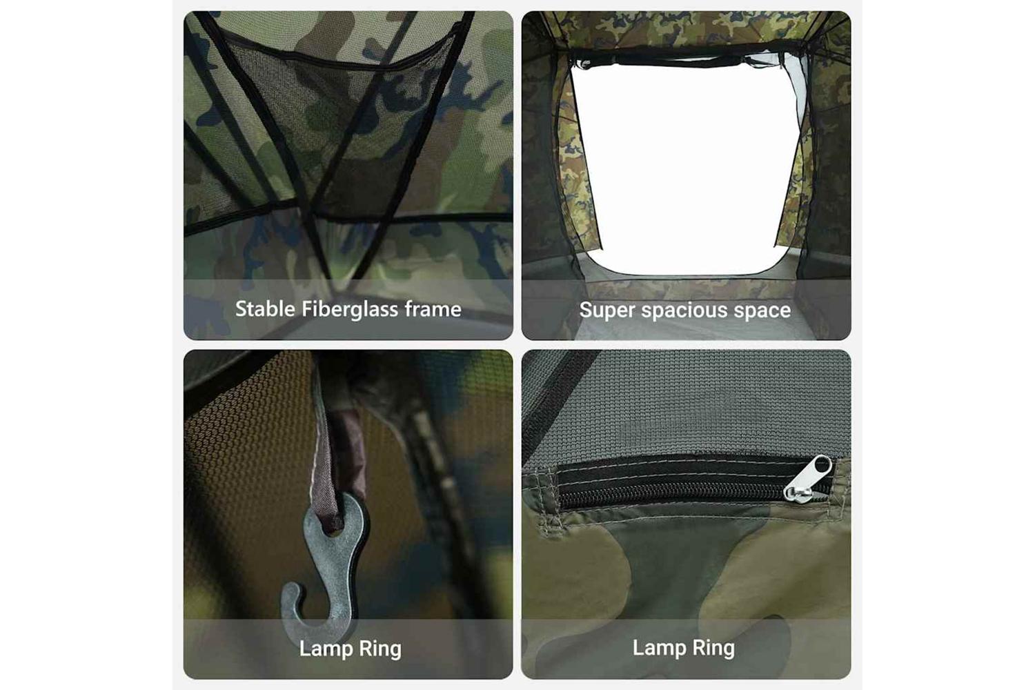 - Secure Zipper Closure Featuring a reliable zipper closure, the tent secures your outdoor gear and personal items inside. The ease of use and added security the zipper provides make it functional for overnight trips or day-long fishing getaways, keeping gear dry and safe.