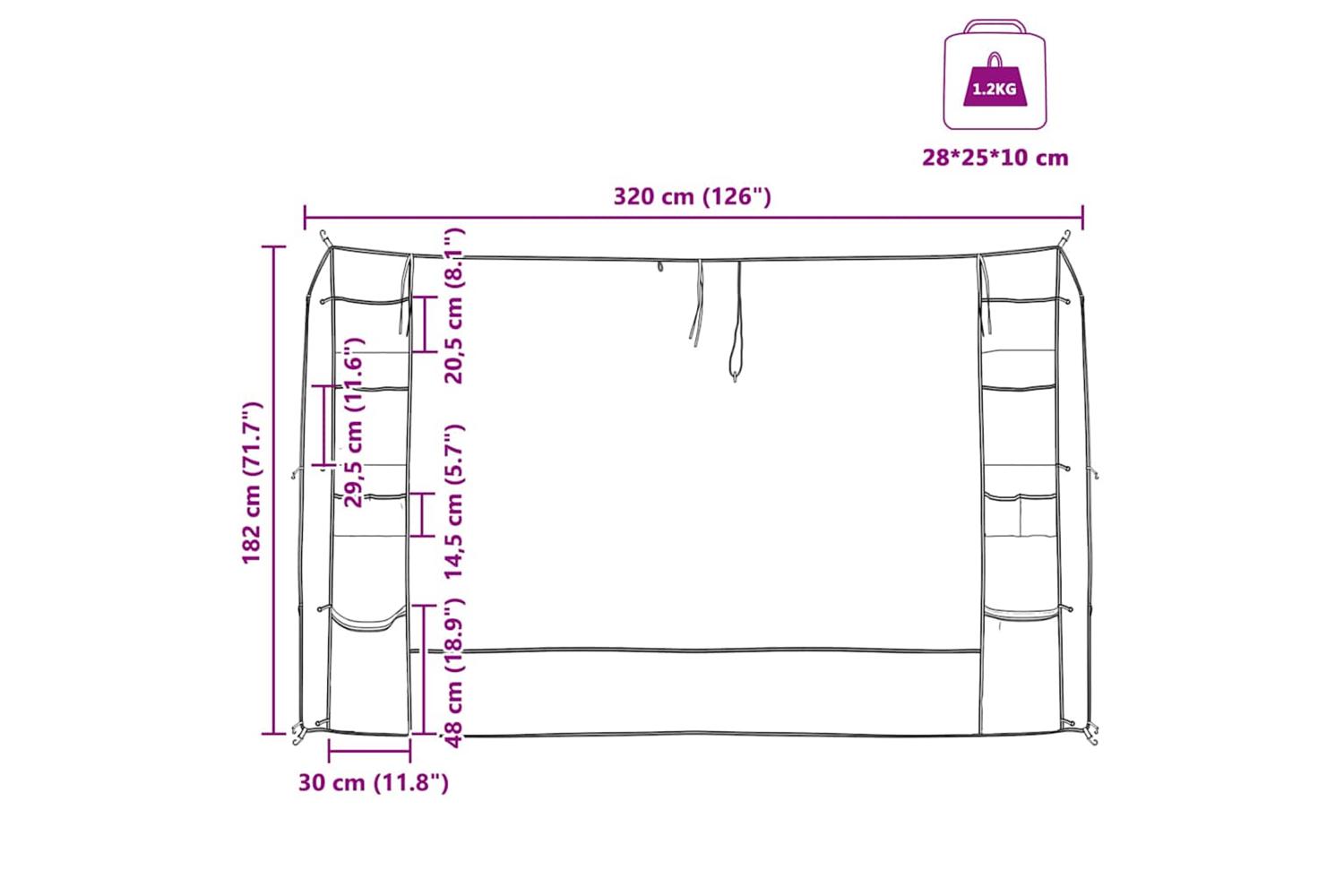 - Overall dimensions: 320 x 182 cm (L x W)