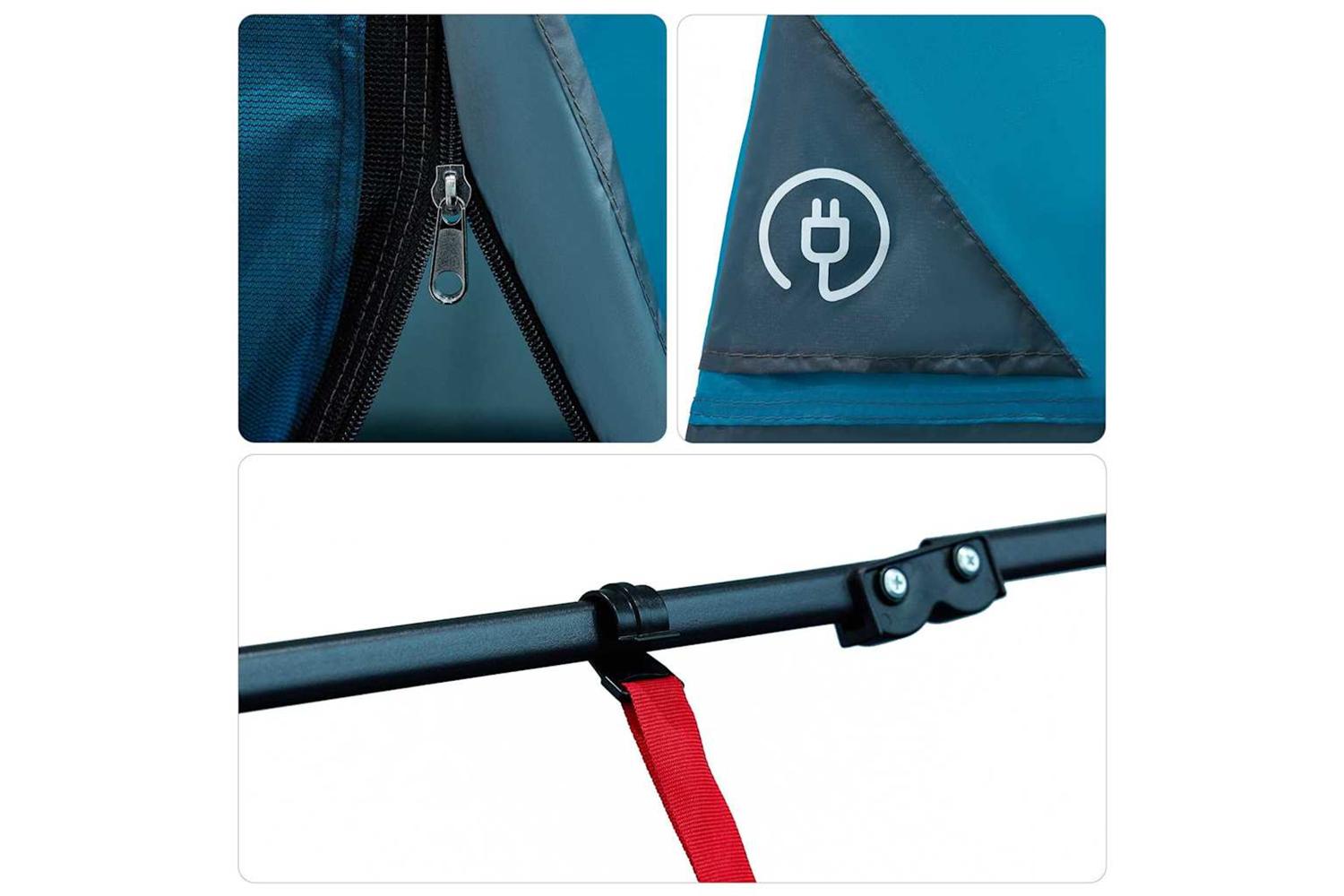 - Features /Function /Design: With a simple yet modern design, the tent includes a practical E-port for electrical navigation and a convenient hanging hook for overhead lighting. This enhances the environment for user-friendly navigation and adjustments after dusk.