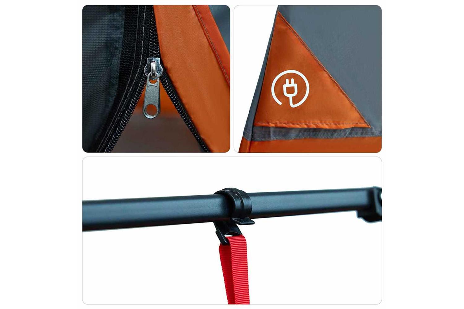 - Features /Function /Design: With a simple yet modern design, the tent includes a practical E-port for electrical navigation and a convenient hanging hook for overhead lighting. This enhances the environment for user-friendly navigation and adjustments after dusk.