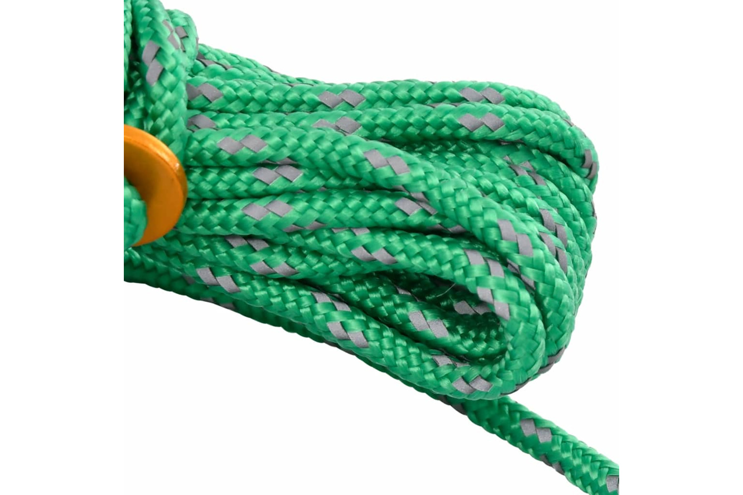 - Long-lasting: This tent guy rope is made of polypropylene, making it durable and able to withstand high tensile strength. Additionally, it has a single reflective strip to ensure visibility at night and safety for people who walk around at night.