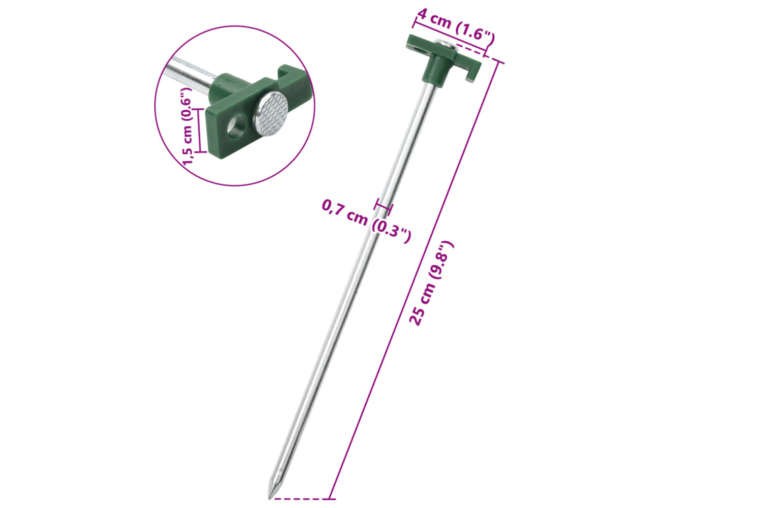 - Two ways to secure: The peg head features a hook and an eyelet, allowing for effortless fastening. This design ensures that tents, pavilions, and awnings remain securely anchored even in windy weather.