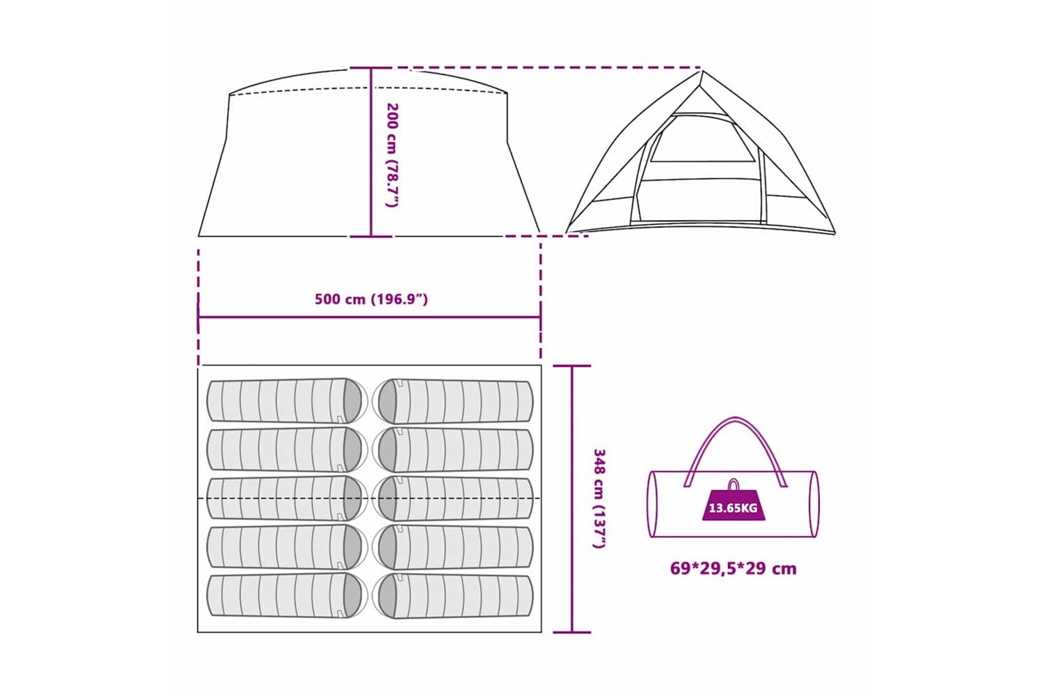 Vidaxl Tunnel Tent With Roof Blue 500 X 348 X 200 Cm Taffeta
