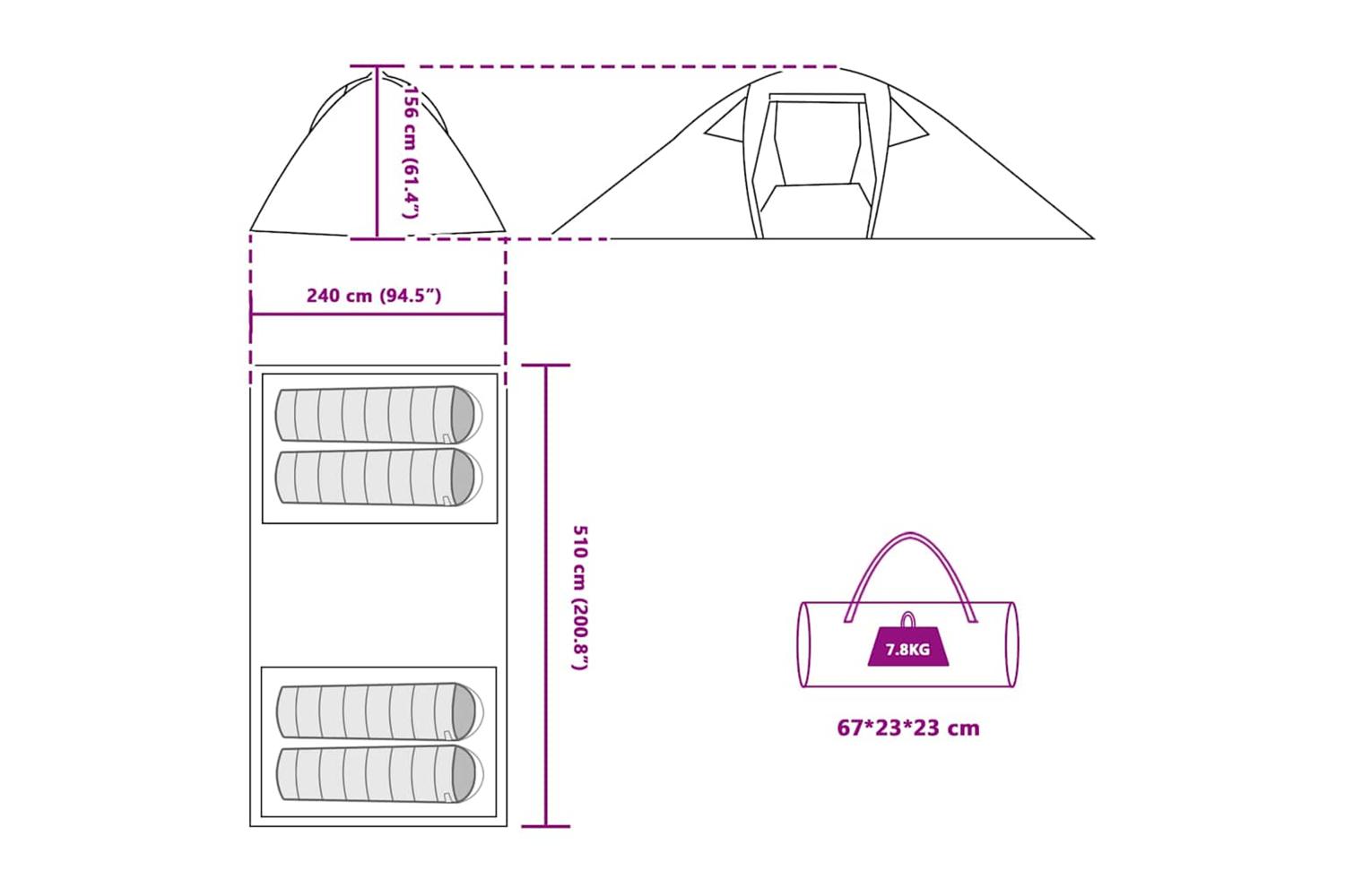 This outdoor tunnel tent redefines your camping experience with its modern design. Featuring a spacious layout, this tunnel tent extends 510 cm in length, providing ample room for families or groups. Crafted with sleek, clean lines, the tent is a harmonious fusion of style and functionality, perfect for the trend-conscious camper. It's the ideal choice for those who appreciate contemporary aesthetics when enjoying the great outdoors.