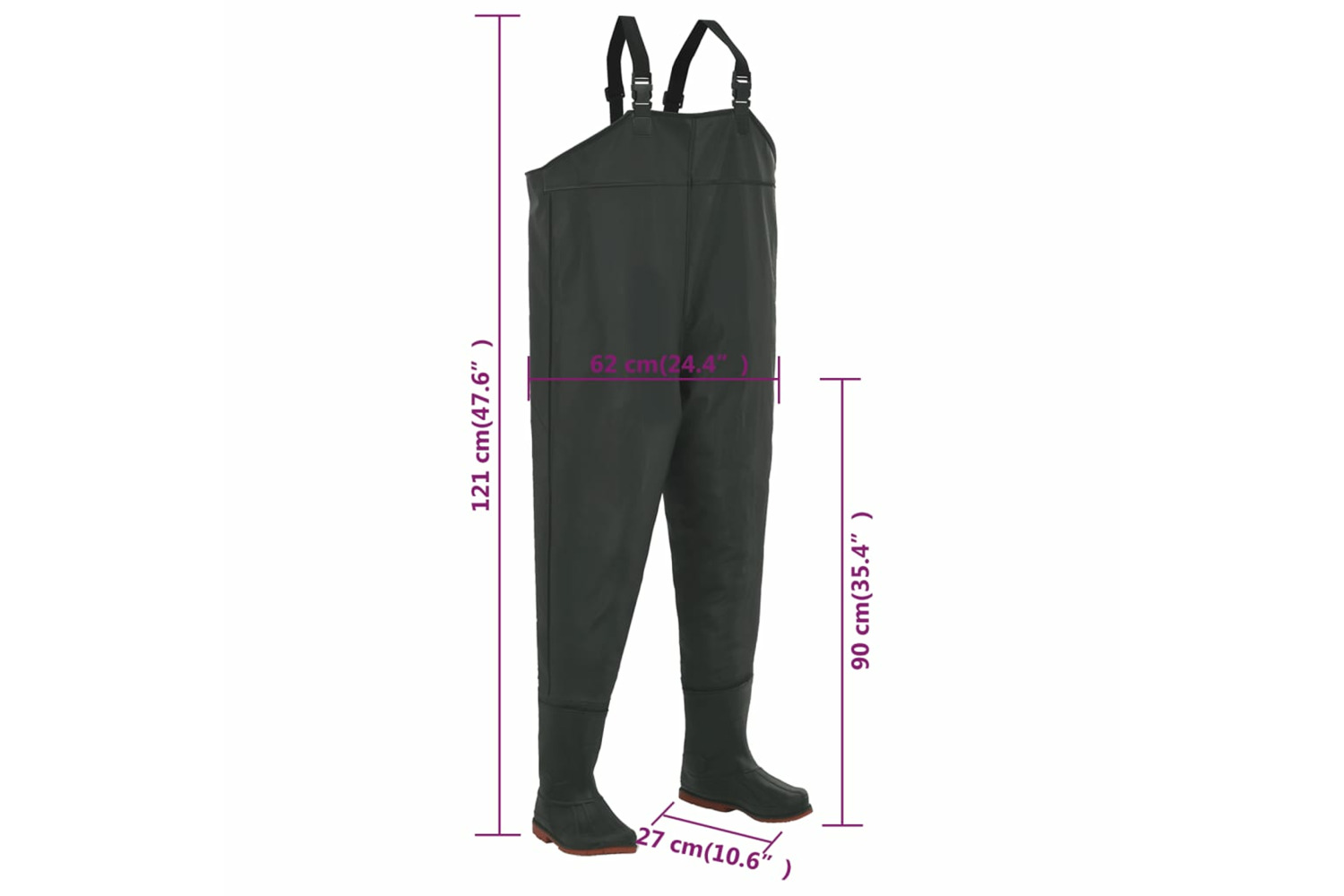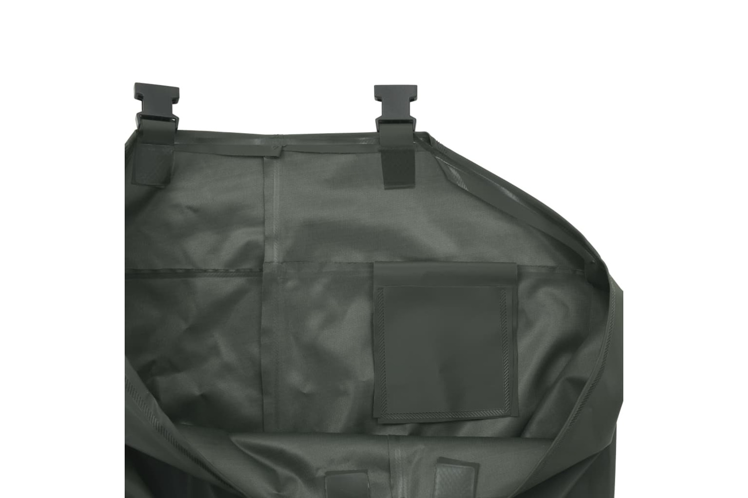 This exceptional coated polyester fabric is cozy and pliable inside, and simultaneously robust outside. Thanks to its stitched and sealed seams, as well as the attached boots, our wading pants are 100% waterproof. Additionally, the shoulder straps enable you to make the fishing pant fit perfectly without a hitch.