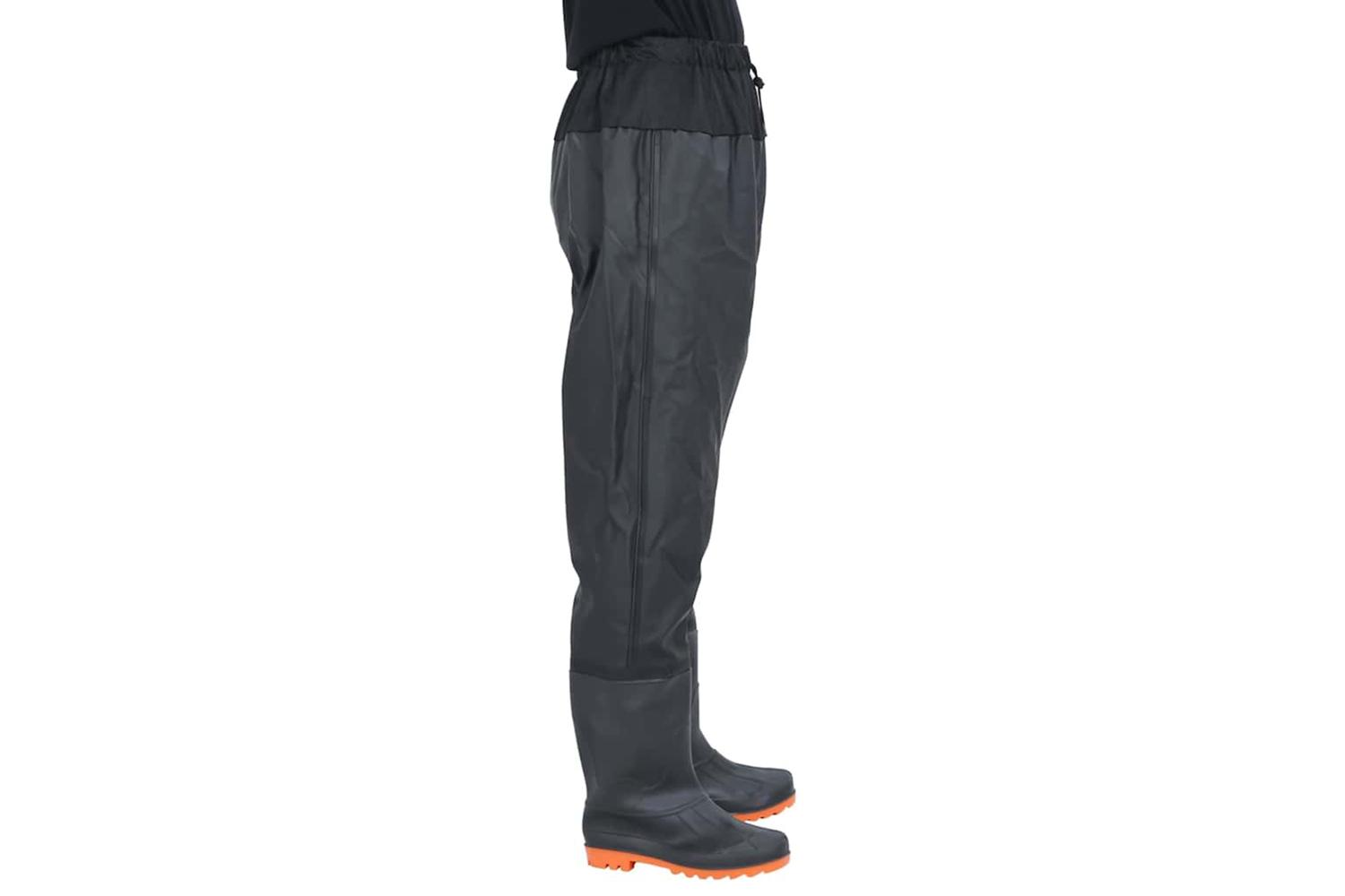 - Water-resistant: This special-coated polyester fabric is pleasantly cosy on the inside and robust on the outside. Thanks to their quilted and taped seams and attached boots, these waders are water-resistant.