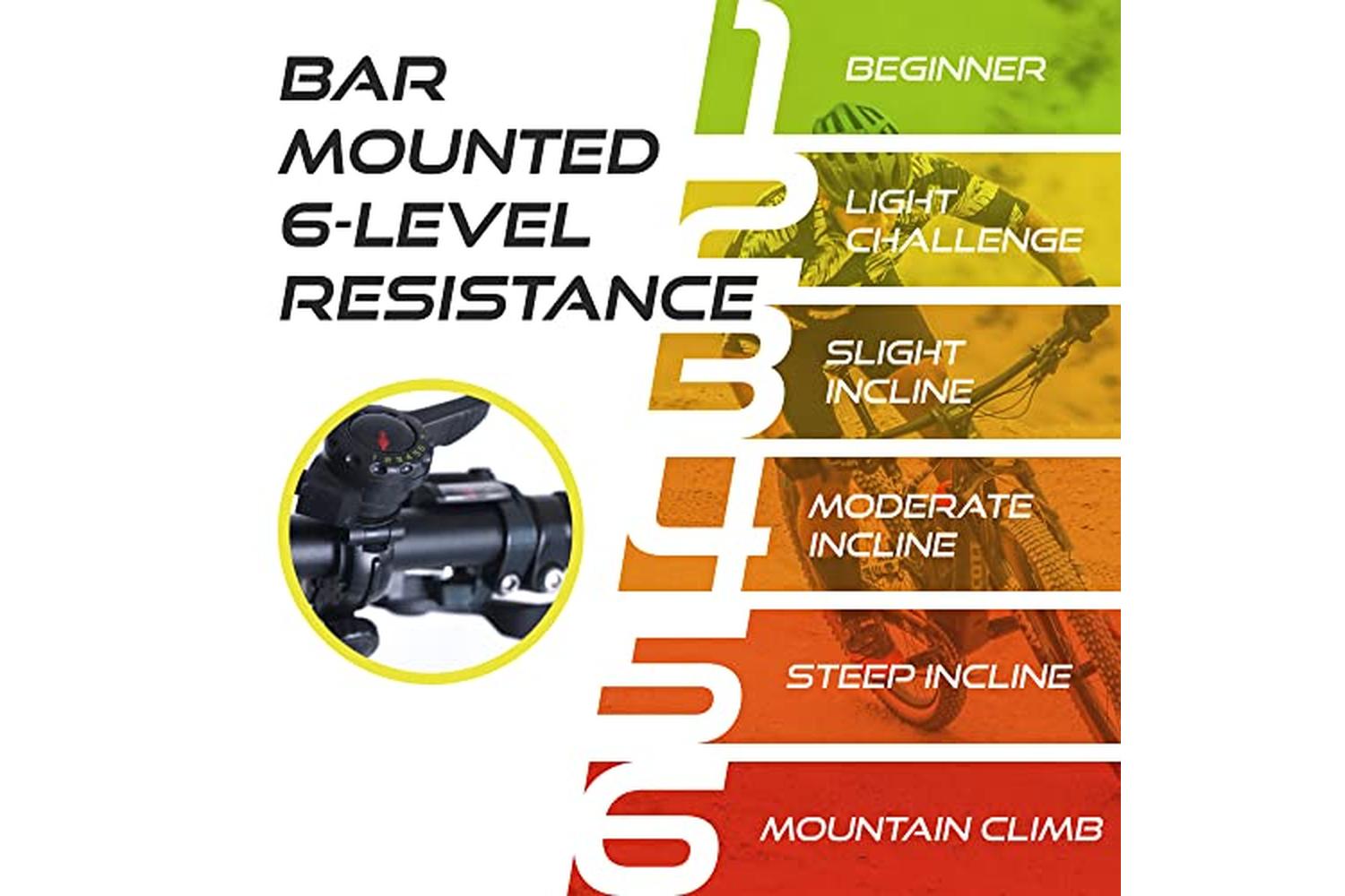 With a seamless handlebar seated 6-gear resistance selector, the Velo Pro provides the perfect setting for all level bikersfrom mountain bikers to road racers, including hybrid and gravel bikes. The Velo Pro leverages a smooth, swift variable resistance system, enabling you to recreate the essence of a tough hill climb or the ease of cycling down a country lane right indoors, keeping your fitness game strong no matter the season.