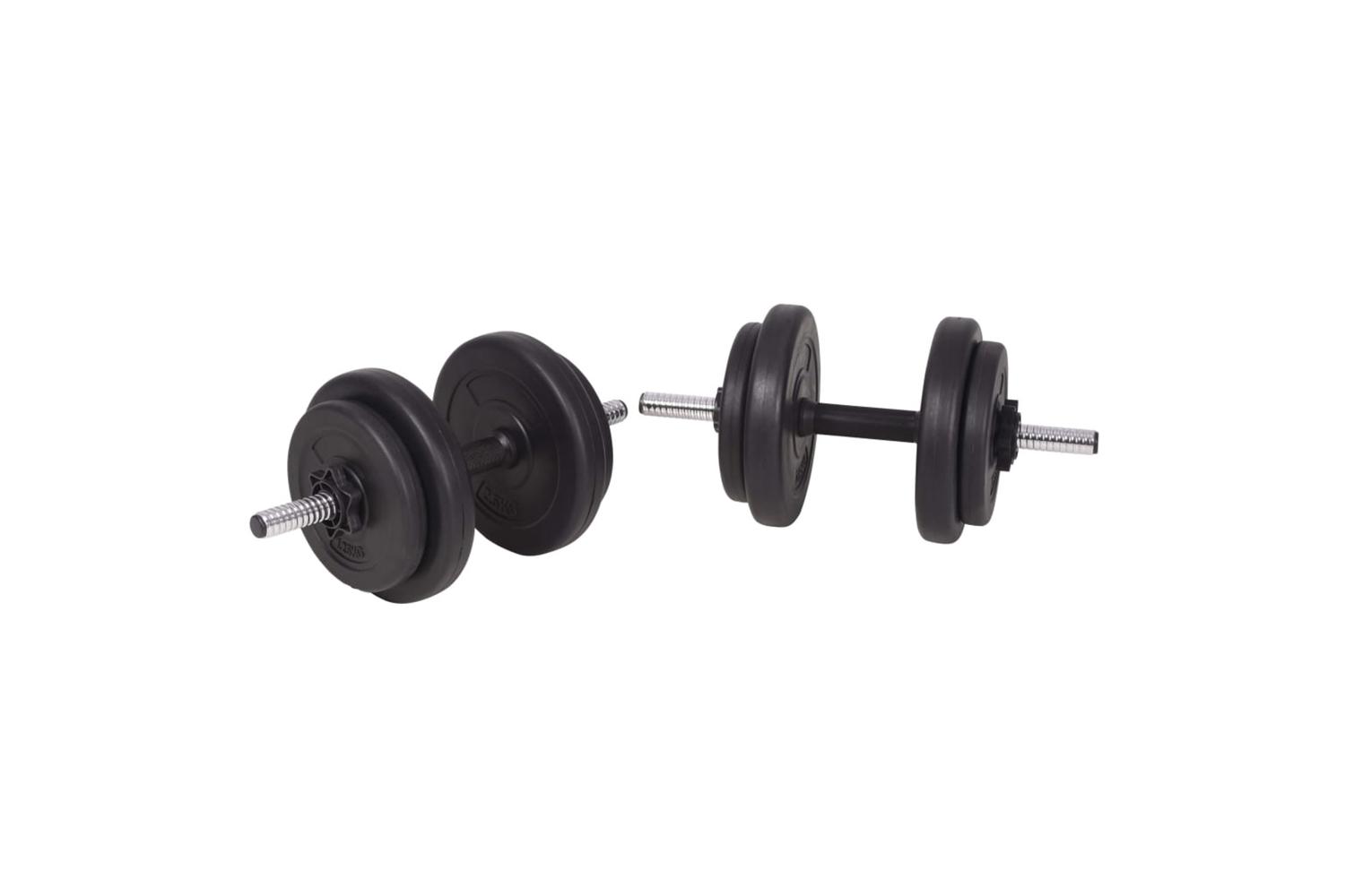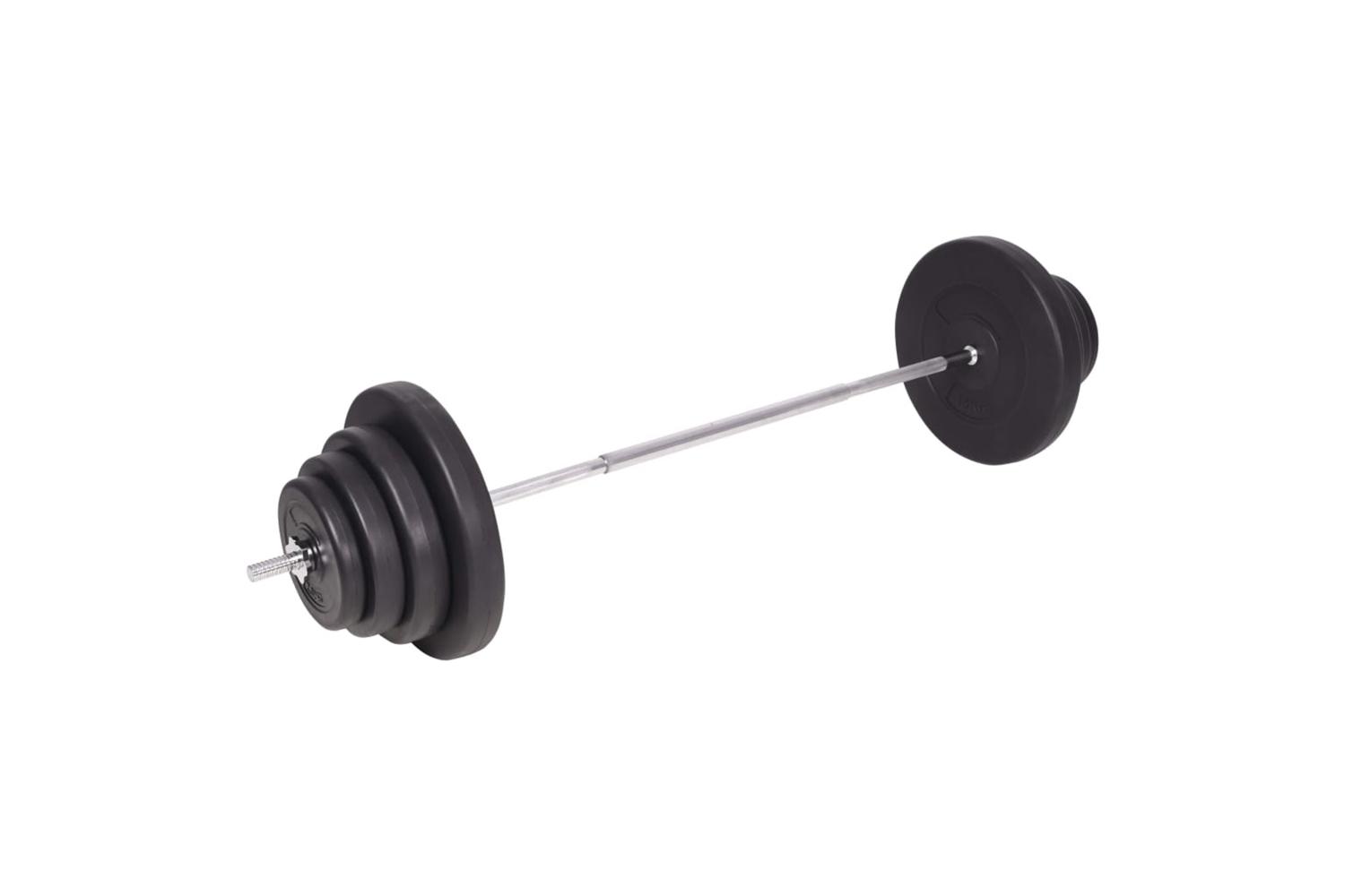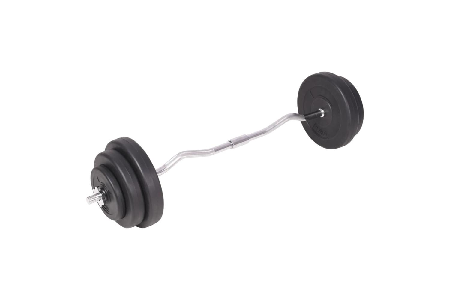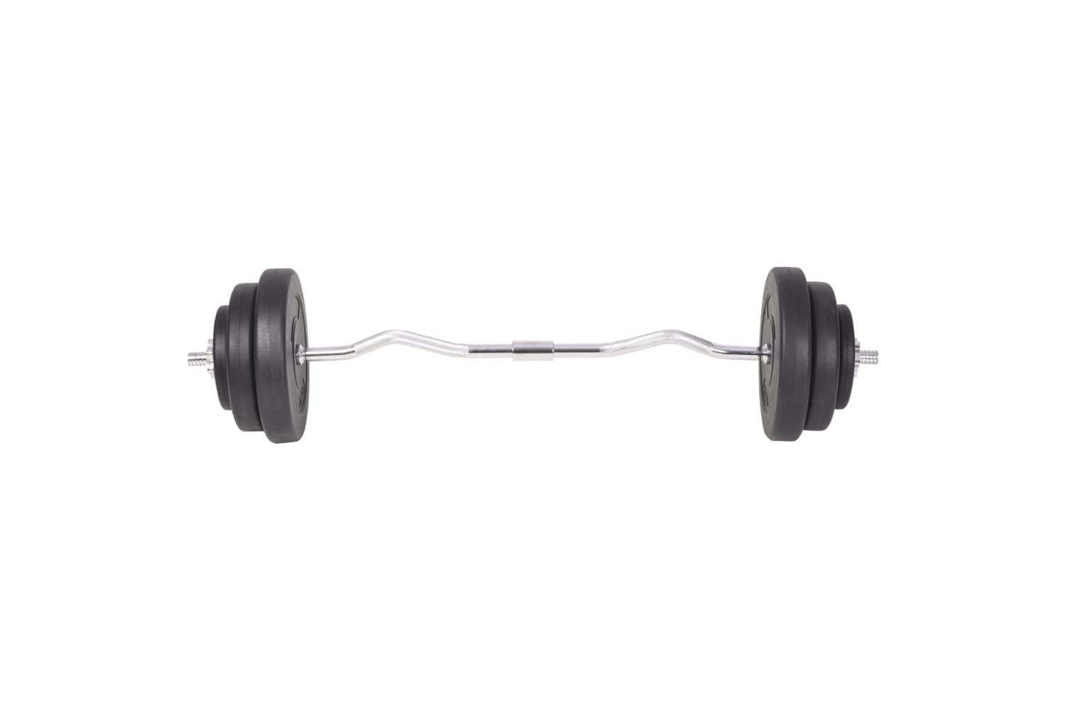 This versatile barbell and dumbbell set is perfect for chest, biceps, arms, triceps and back muscles. It includes two 15 kg plates, two 10 kg plates, two 7.5 kg plates, four 5 kg plates, six 2.5 kg plates, six 1.25 kg plates, two barbell bar and two dumbbell bar and has a total weight of about 120 kg.